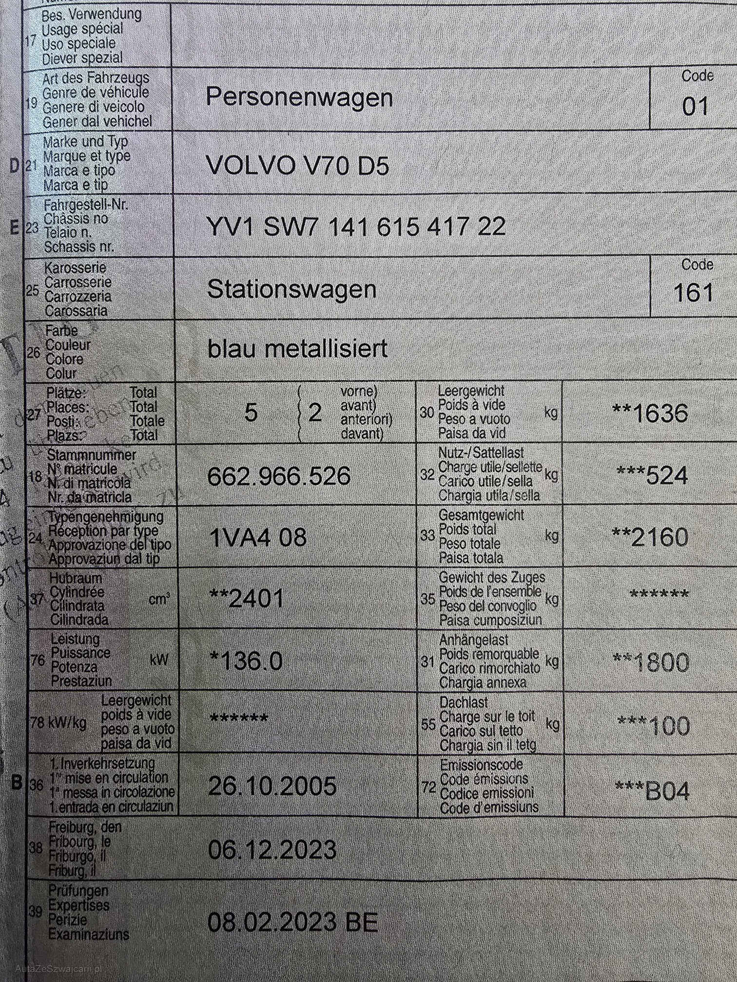 | VIN | YV1SW714161541722 |