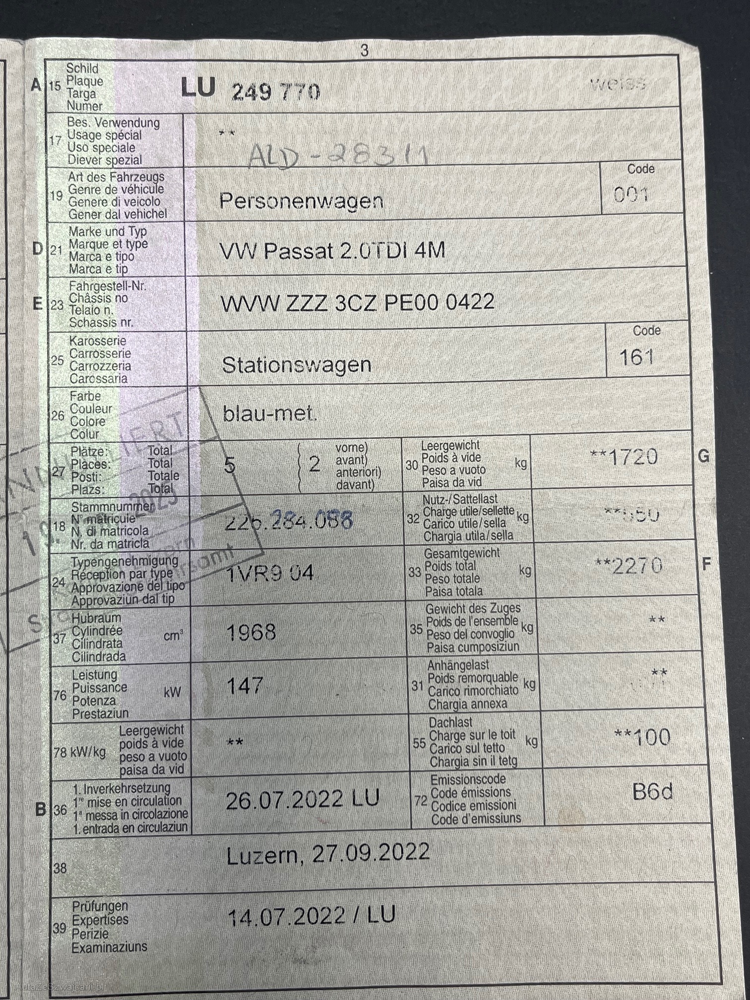 | VIN | WVWZZZ3CZPE000422 |
