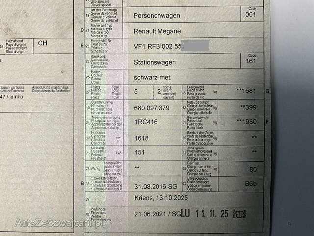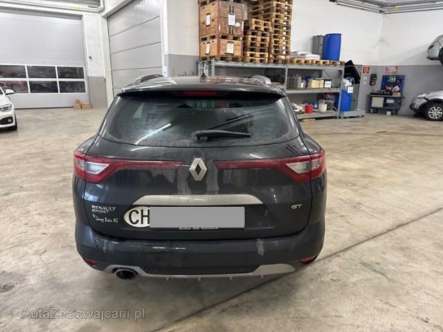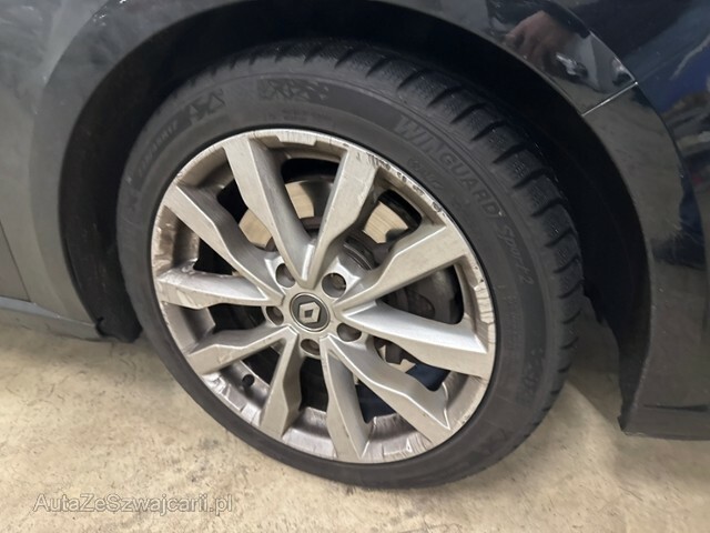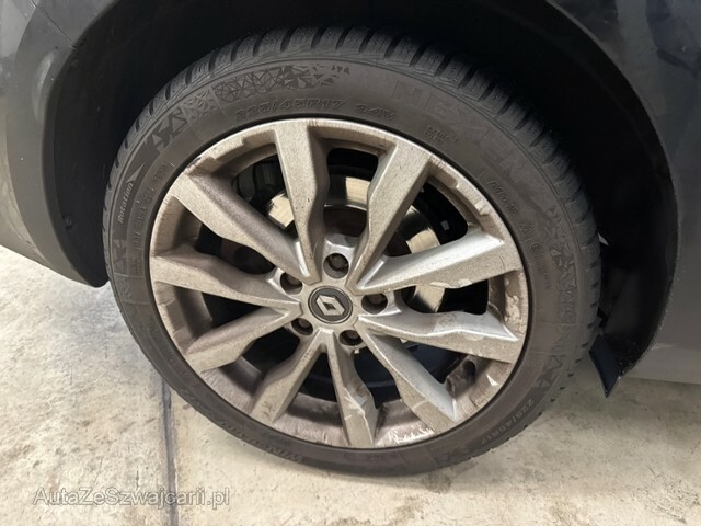 | Condition_and_Equipment | Zustand Fahrzeug muss transportiert werden (Höhe und Breite beachten). Fahrzeug ist NICHT fahrbar. Batterie leer. Bereifung Fahrzeug wird mit Winterräder abgegeben. Weitere wichtige Hinweise Der Motor konnte nicht gestartet werden, keine Batteriespannung --- Links Linke Seite beschädigt. Anstoss links im Bereich der A-Säule. Anstoss links im Bereich der B-Säule. Achse Risiko Vorderachse. Innenraum Starke Verschmutzung im Innenraum. Sonstige Schäden Div.Carrosserie Teile sind leicht beschädigt. Hagel Hagelschaden leicht. --- Serienaustattung Airbag Fahrer und Beifahrerseite Elektrische Fensterheber vorne Aussenspiegel elektrisch verstellbar und heizbar Sportfahrwerk Dachreling Seitenairbag Fahrer und Beifahrerseite Mittelarmlehne hinten Elektrische Fensterheber hinten Deaktivierung Beifahrerairbag Reserve-Notrad Windowbags vorne + hinten ABS und EBV Elektr. Bremskraftverteilung inkl. BA Leichtmetallfelgen 17" Zwei Zonen-Klimaautomatik Tempomat mit Geschwindigkeitsbegrenzer Automatisch abblendbarer Innenspiegel Dunkle Verglasung hinten Regen- und Lichtsensor Kindersitzverankerung ISOFIX hinten Renault Chipkarte Keyless-Drive Hands-free Berganfahrhilfe Sitzbezüge in Stoff Fahrersitz höhenverstellbar Einparkhilfe hinten Beifahrersitz höhenverstellbar Reifenreparatur-Kit Stop + Start System LED-Scheinwerfer LED Tagfahrlicht Aussenspiegel elektrisch einklappbar Sitzbank hinten 1/3 - 2/3 umklappbar Schaltwippen am Lenkrad Spurhalteassistent LDW Keine Gewähr auf die Angaben der Serienausstattungen Multifunktions-Sport-Lederlenkrad DAB+ Digital Audio Broadcast Adaptiver Fernlichtassistent Digitale Instrumentierung Vierradlenkung 4 Control ASR und ESC/ Antriebsschlupf- und Stabilitätsprogramm Fahrersitz mit Lendenwirbelstütze verstellbar Verkehrsschild-Erkennungssystem R-Link Sonderausstattung Metallic-Lackierung Glasschiebedach elektrisch Einparkhilfe vorne und hinten mit Rückfahrkamera Pack Safety Pack Nav 8.7 Bose |
