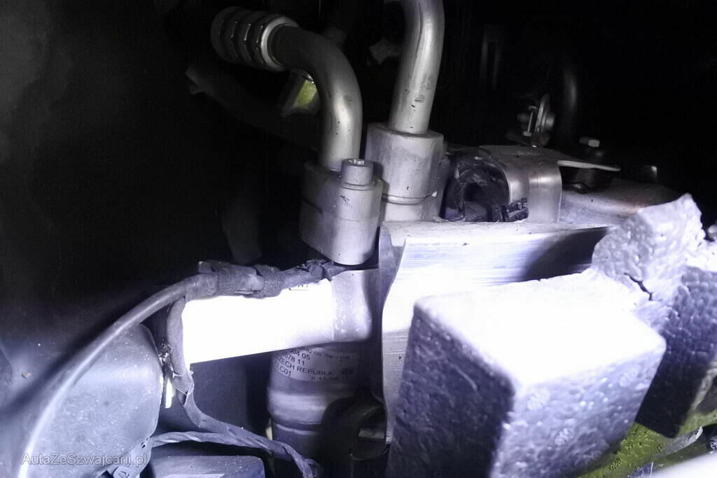 Die Stossstange mit Anbauteilen, Sensoren und Verstärkung, Fahrtleuchte, die Quertraverse mit Aufnahmen sowie die Längsträgerspitze rechts sind beschädigt. Der Scheinwerfer ist gebrochen, die Motorhaube und der Grill weisen Kontaktspuren auf. Der Klimatrockner sowie deren Leitungen sowie Luftführungen sind beschädigt. Verschiedene Motorraumanbauteile sind beschädigt.Beide Frontairbags sowie der Gurtenstraffer links wurden ausgelöst.