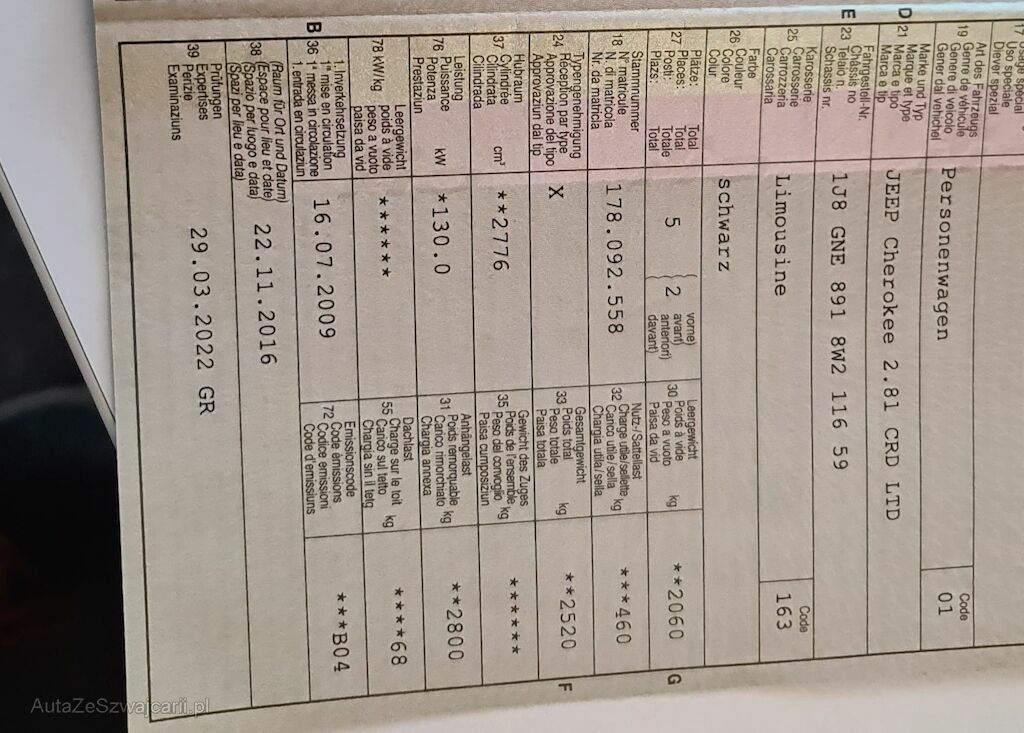 | Typ | Cherokee 2.8 CRD LTD |