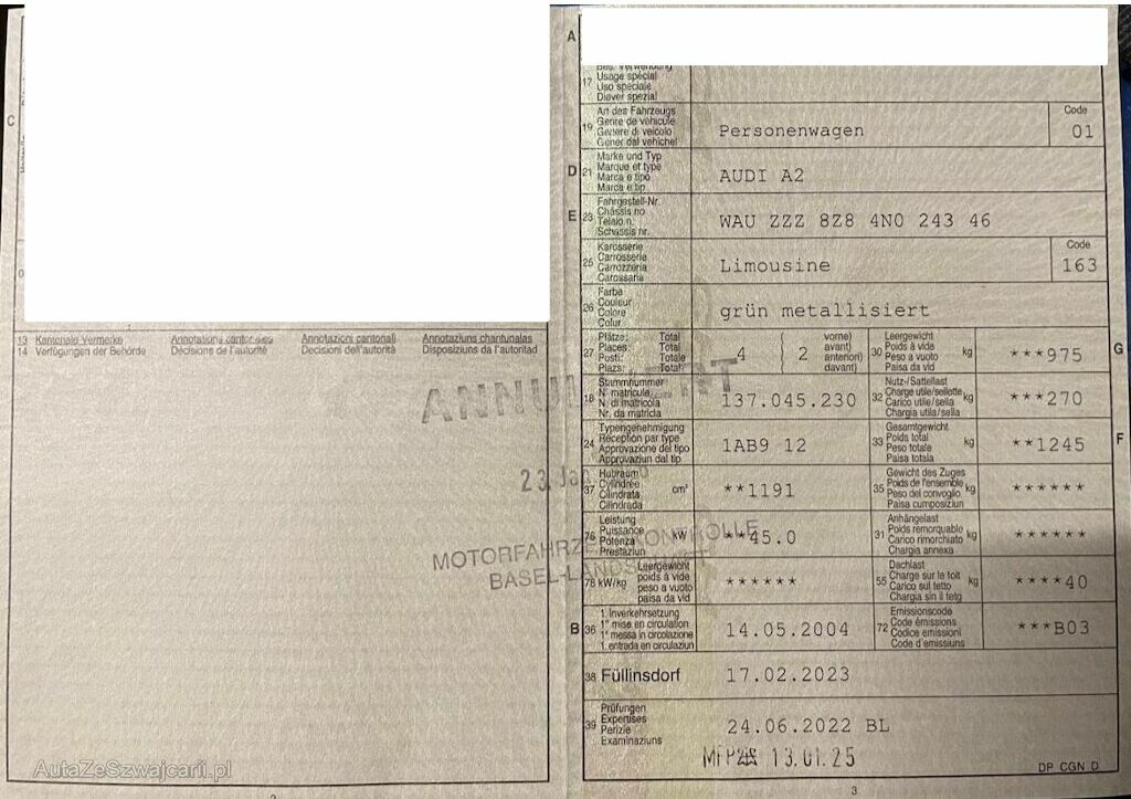 | Typenschein | 1AB912 |