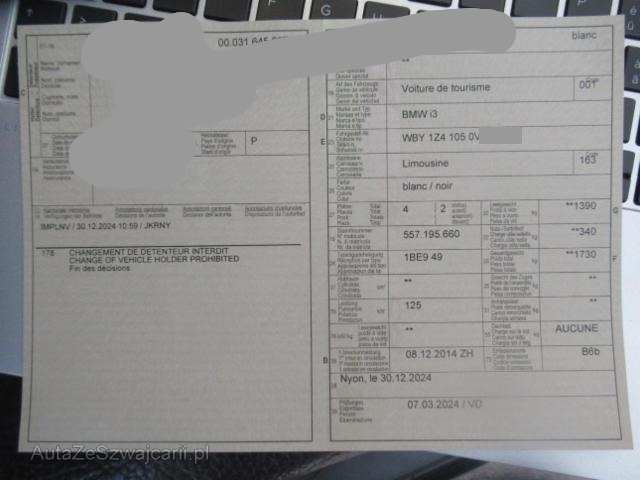 | Condition_and_Equipment | Demontage Persönliche Gegenstände oder Ladegut im Fahrzeug werden entfernt. Zustand Fahrzeug muss transportiert werden (Höhe und Breite beachten). Fahrzeug ist NICHT fahrbar. Fahrzeug ist NICHT rollbar. Bereifung Fahrzeug wird mit Sommerräder abgegeben. Sonstiges Fahrzeugdokumente vorhanden. Schlüssel Nur ein Schlüssel vorhanden. Hersteller- und Gewährleistungsbedingungen Die Fahrzeuggarantie oder Gewährleistung wird möglicherweise nicht vom Hersteller fortgeführt Standzeit Das Fahrzeug wurde lange nicht gefahren Hochvoltfahrzeug Zum Zeitpunkt der Prüfung ging von der Batterie keine Brandgefahr aus. Die geforderten Sicherheitsbestimmungen sind zwingend vom Käufer einzuhalten. Weitere wichtige Hinweise Blaue Abdeckung auf dem Fahrzeug. --- Links Linke Seite beschädigt. Rechts Rechte Seite beschädigt. Motor Risiko Motor. Getriebe ist abgerissen und zerstört. Risiko Differenzial. Achse Risiko Vorderachse. Risiko Hinterachse. Risiko Lenkung. Elektrik Risiko Steuergeräte. Innenraum Innenraum ungepflegt. Sonstige Schäden Div.Carrosserie Teile sind leicht beschädigt. Hochvoltfahrzeug Keine sichtbaren Schäden am Antriebsakku --- Serienaustattung Klimaanlage inkl. Mikrofilter Fahrer und Beifahrer-Airbag Seitenairbag für Fahrer und Beifahrer Radio BMW Professional Aussenspiegel elektrisch verstellbar Dynamische Stabilitäts-Control DSC Antiblockiersystem ABS Servotronic Lederlenkrad Fensterheber elektrisch vorn Kopfairbags vorne + hinten Park Distance Control PDC hinten Lenksäule mit Höhen- und Längseinstellung Rücksitzlehne asymmetrisch geteilt umklappbar Leichtmetallräder Sternspeiche USB-Audio-Schnittstelle Digital audio DAB-Tuner Graukeil-Frontscheibe Details siehe gültige Preisliste des Importeurs Freisprecheinrichtung für Handys Keine Gewähr auf die Angaben der Serienausstattungen Hochvoltbatterie Ladekabel Sonderausstattung HiFi-System Harman/Kardon Sitzheizung für Fahrer und Beifahrer Navigationssystem Professional Velours-Fussmatten Getränkehalter Komfortzugang Pack Parkassistenz Komforttelefonie mit erweiterter Smartphone Anbindung Internet ConnectedDrive Services Real Time Traffic Information Concierge Service LED-Scheinwerfer Schnell-Lader Pack Connected Drive Services Leichtmetallräder Turbinenstyling 428/ Mischbereifung Pack Comfort Interieur Design Suite |