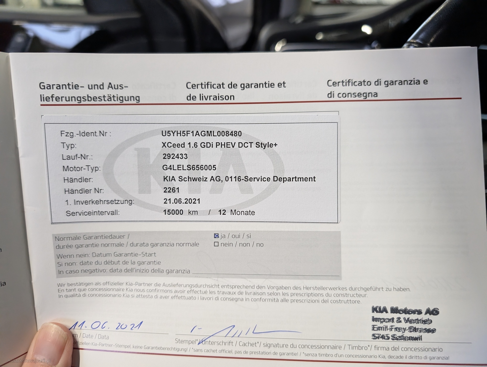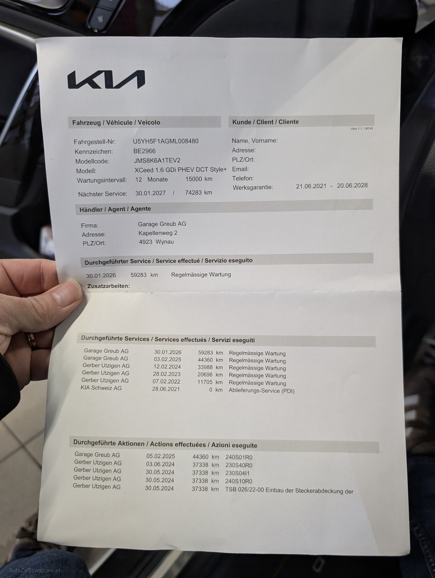 | Kommentar | Frisch ab Service. Werksgarantie Kia bis 06.2027 oder 150'000 km. Garantiegeberin ist Kia. Die Garage Greub AG übernimmt keine Garantie. Gesetzliche Gewährleistung wird wegbedungen. Wandelungen und Minderungen ausgeschlossen. |