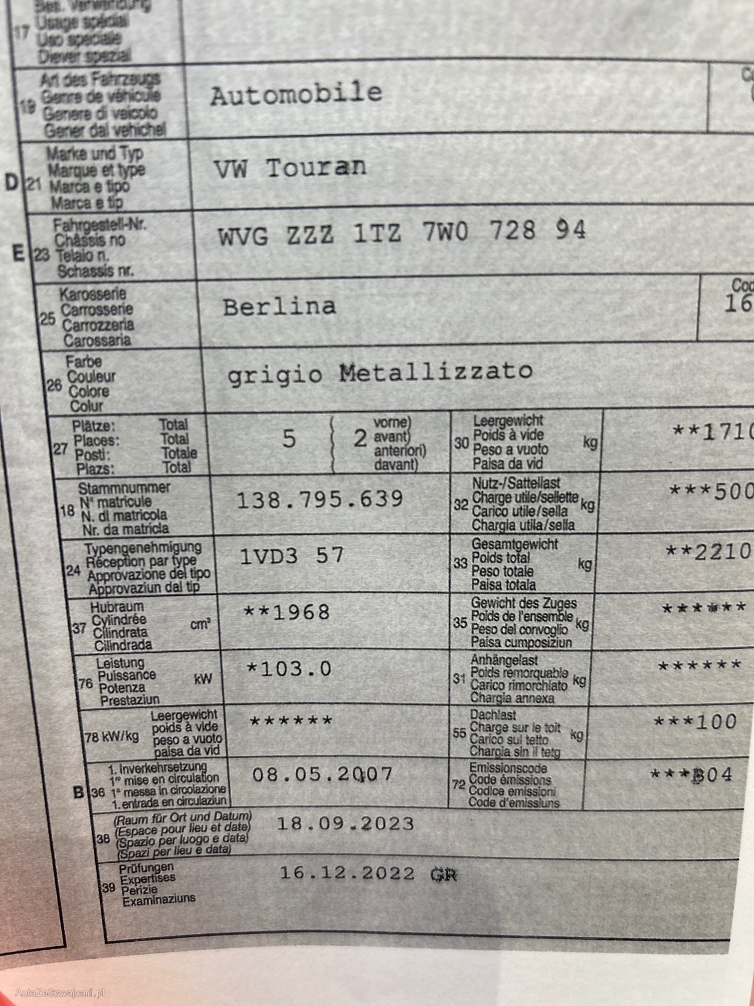 | VIN | WVGZZZ1TZ7W072894 |