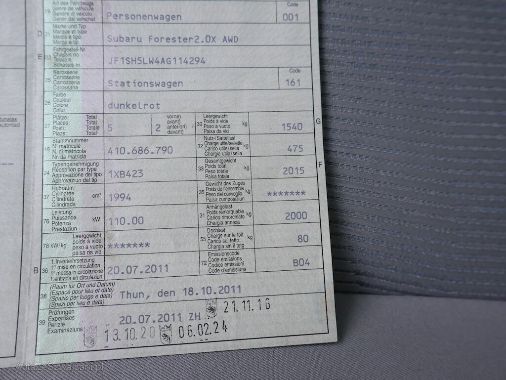 | Typ | Forester 2.0X AWD |