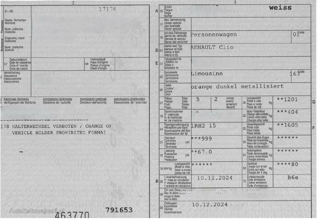 | Fahrzeugausweis | Vorhanden |