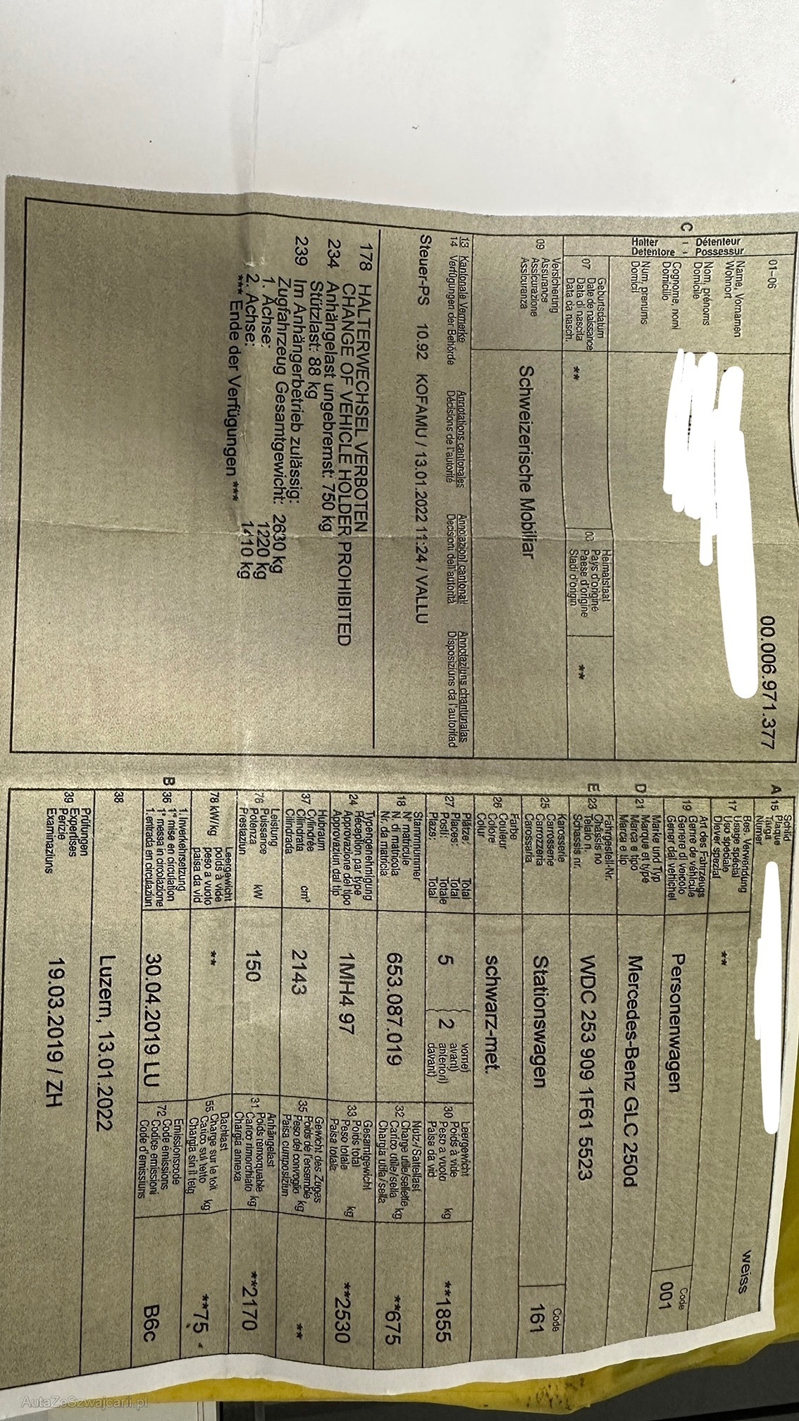 | VIN | WDC 253 909 1F61 5523 |