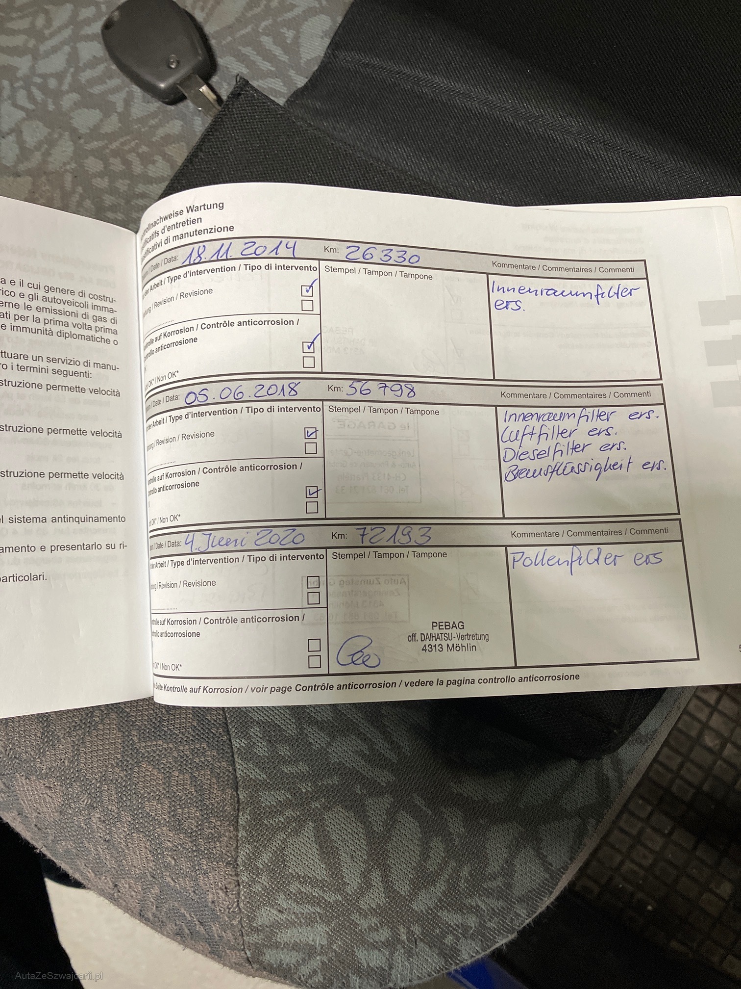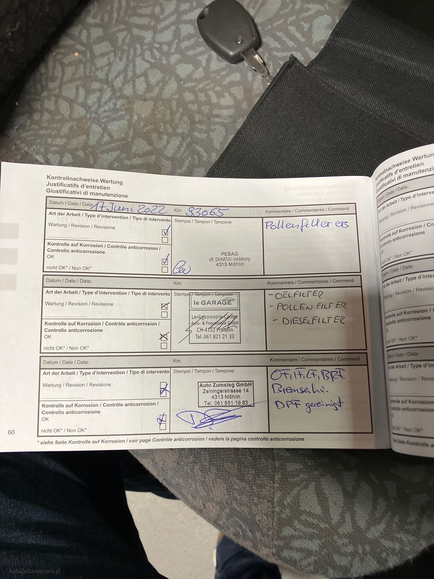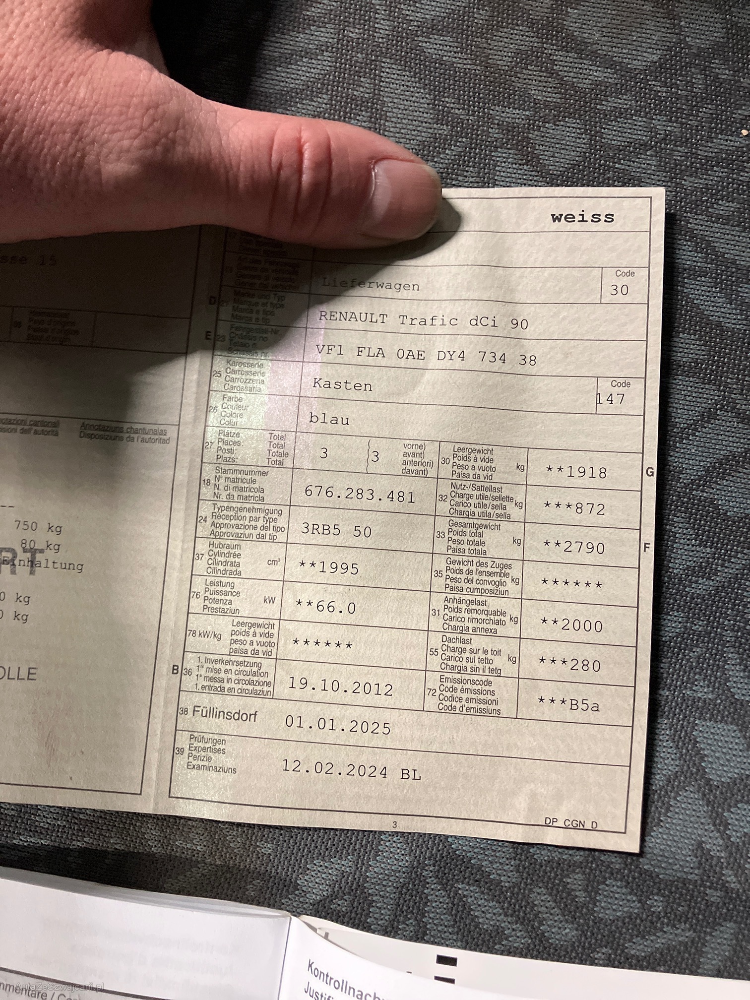 | Kommentar | Siehe Warnleuchte. Fahrzeug ohne Werkstatttest. |