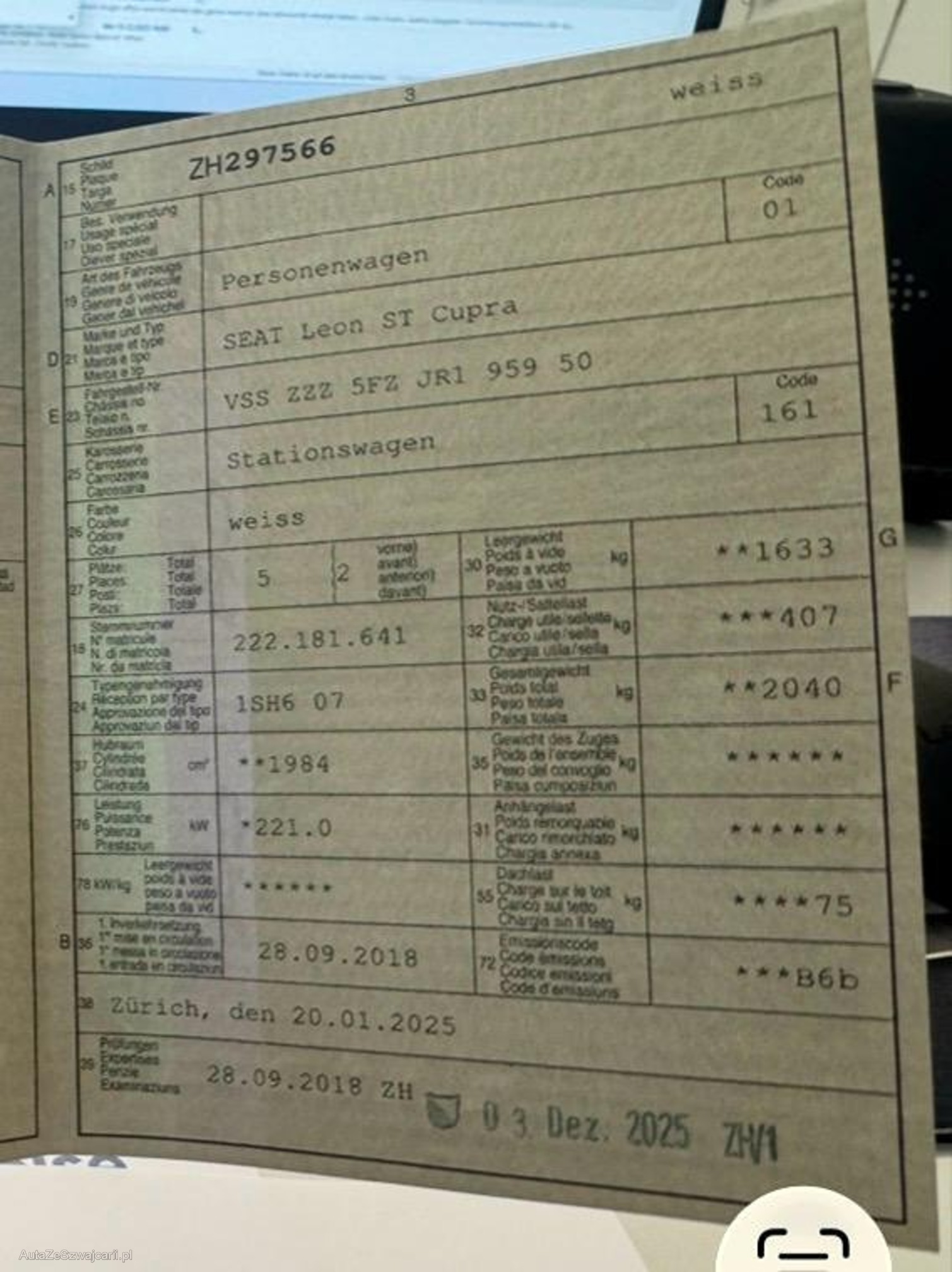 | Kommentar | MFK 03.2025 und 02.12.2025 frisch ab Service. Am Fahrzeug wurde kein Werkstatttest gemacht (Für sichtbare oder nicht sichtbare Mängel wird nicht gehaftet). Wir testen & kontrollieren nicht alle Funktionen vom Fahrzeug. Das Risiko liegt somit vollumfänglich beim Käufer. Nachdem der Höchstbietende den Zuschlag erhalten hat, gibt es keine Nachverhandlung, auch wenn nicht deklarierte Mängel zum Vorschein kommen sollten. Ab Platz ohne Garantie, Wandelung und Minderung werden wegbedungen. |