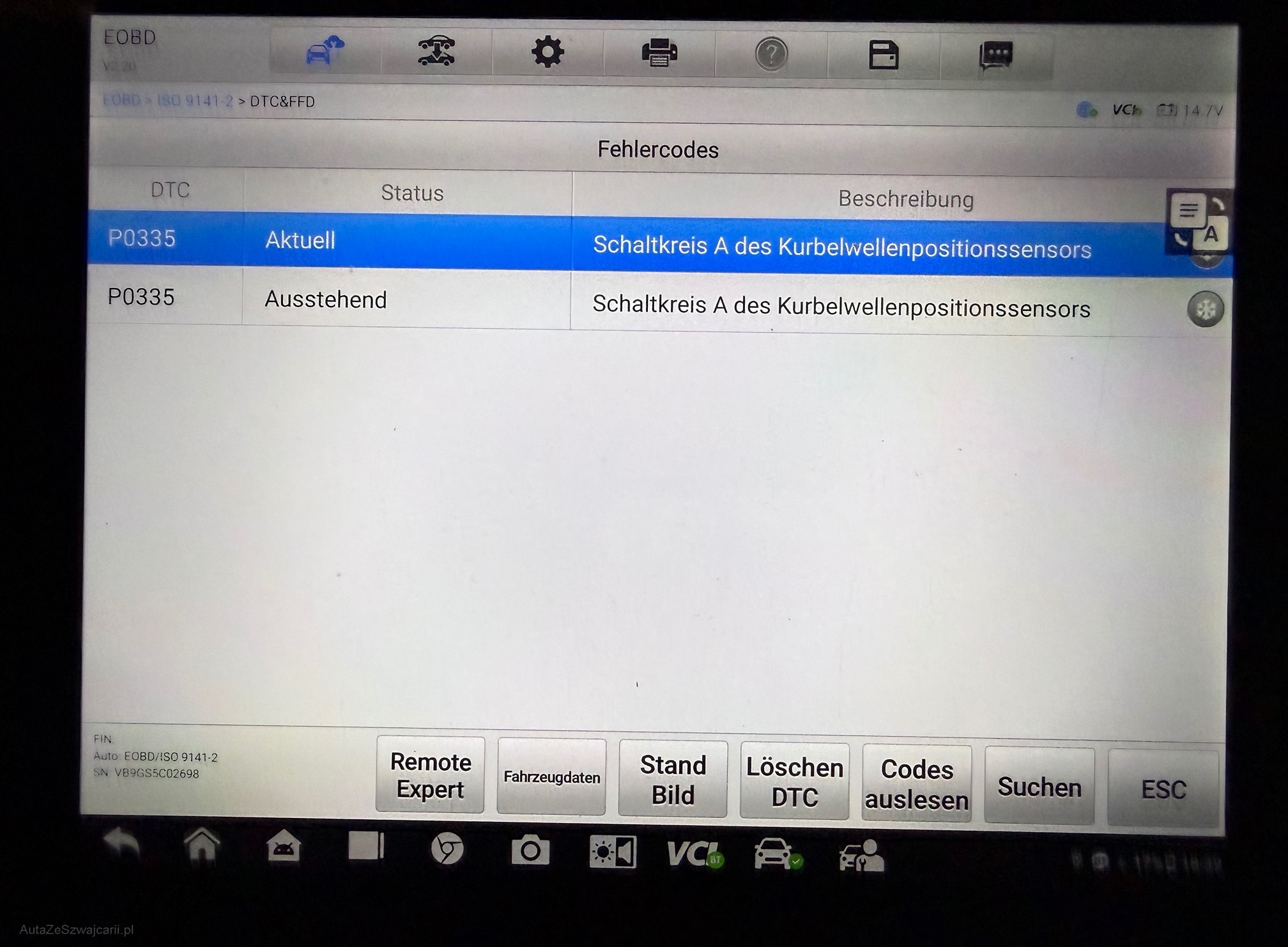 | Motorkontrollleuchte an | No |