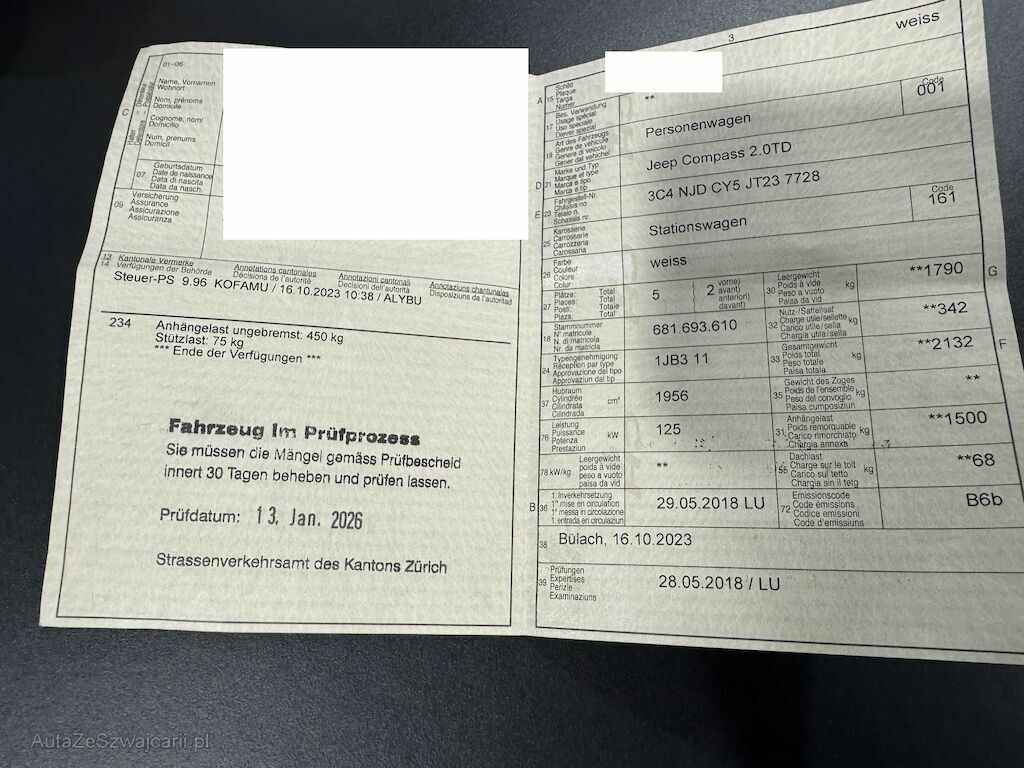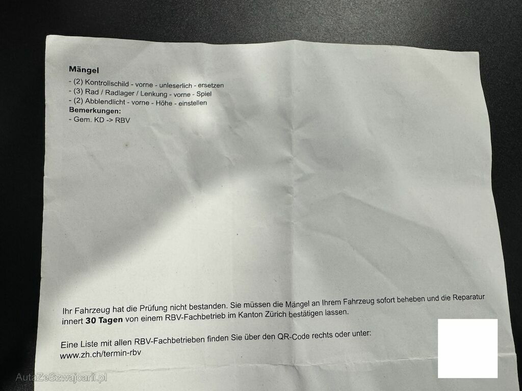 - Festgestellte Mängel nach MFK, siehe Foto im Inserat