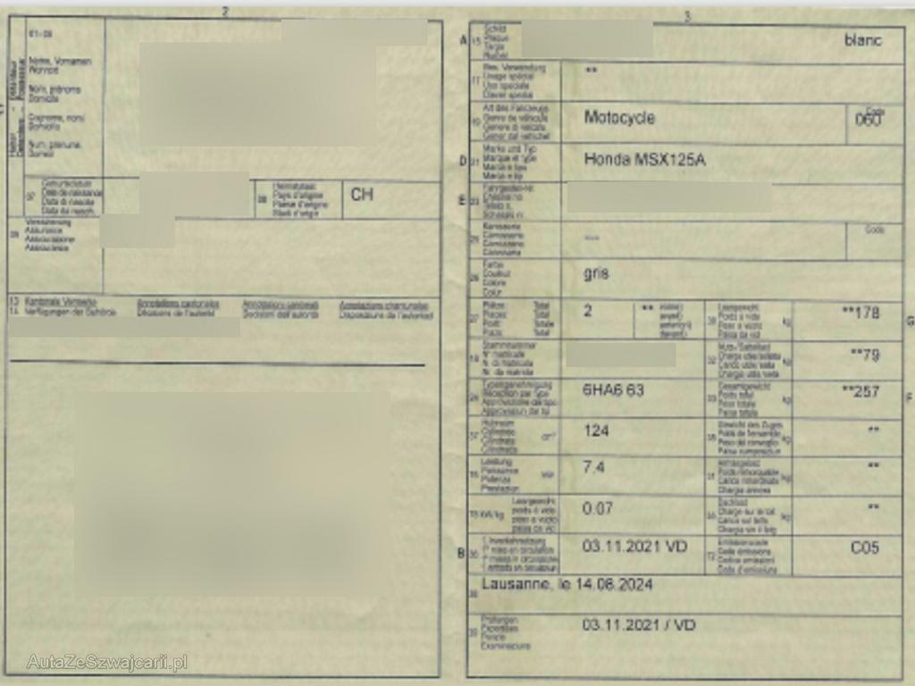 | Fahrzeugausweis | Vorhanden |