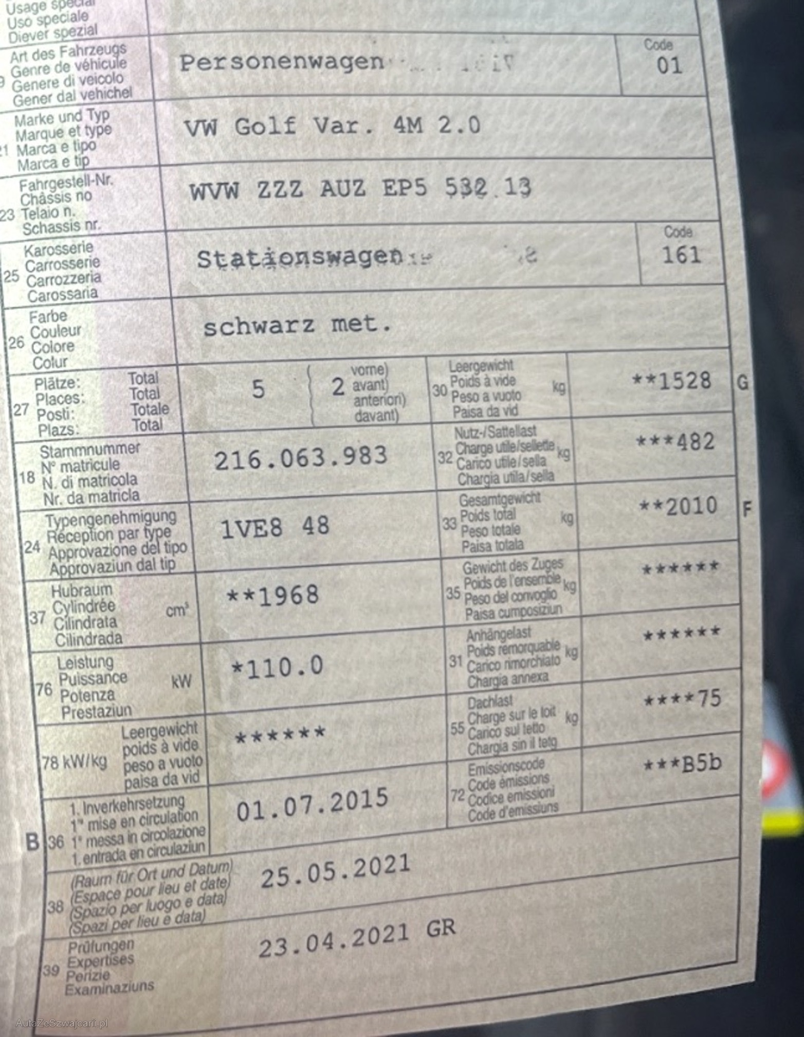 | Kommentar | Im Kundesauftrag zu verkaufen: - Kein Werkstatttest durchgeführt - Zylinderkopfdichtung im 2022 ersetzt - Partikelfiltermessung nicht bestanden (4'317'333 #/cm3) - 8 fach Bereift - Schaden Stossstange hinten (siehe Foto) - Delle Seitenwand HR (siehe Foto) Jede Gewährleistung, soweit nach Gesetz möglich, wird wegbedungen, insbesondere sind Wandelung und Minderung ausgeschlossen. |