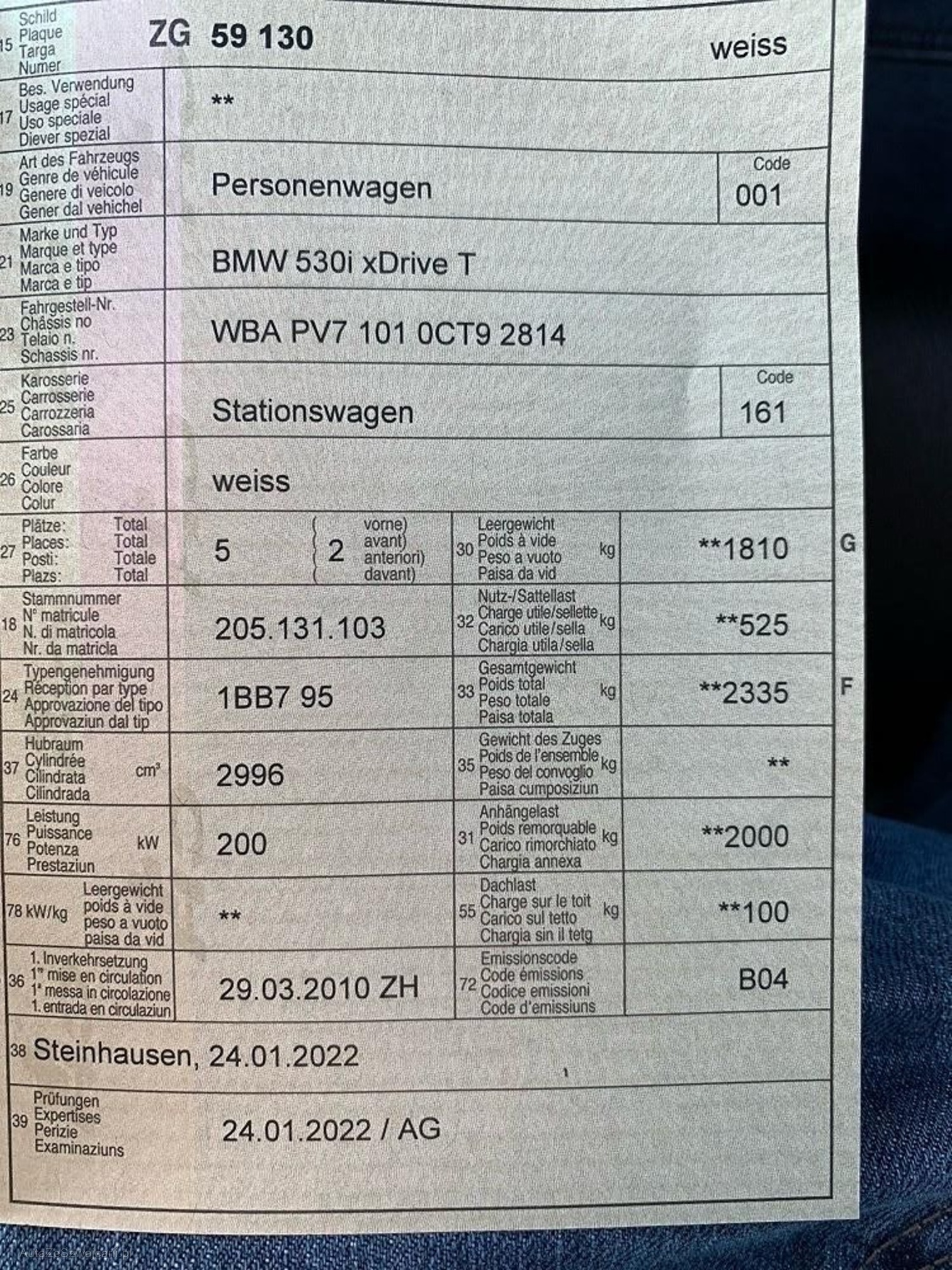 | VIN | WBA PV7 101 0CT9 2814 |