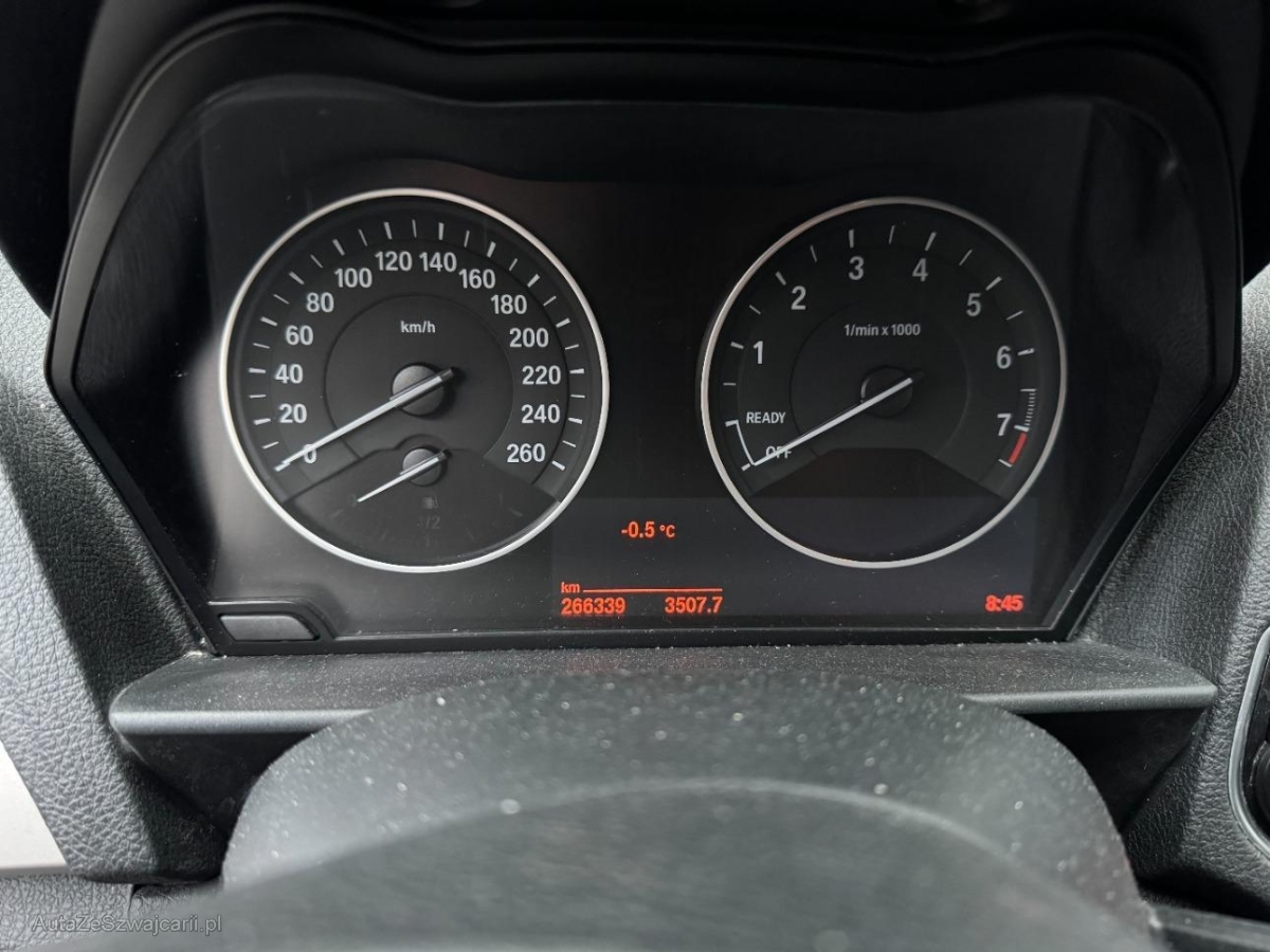 | Sonderausstattung | Abschliessbare Radschrauben, Räder:Leichtmetallfelgen im V-Speichen-Design 378, 16J 7 J×16/Bereifung 205/55 R 16, Lichtpaket, Instrumentenkombination mit erweiterten Umfängen, Assist: Park Distance Control vorne und hinten, Assist: Rückfahrkamera, Komfortzugang, Real Time Traffic Information, Servotronic, Multifunktionslenkrad, Klimatisierungsautomatik, Navigationssystem Professional, Tempomat mit Bremsfunktion, Ablagenpaket, Ohne Modellbezeichnung, Reifen mit Notlaufeigenschaft, Raucherpaket, ConnectedDrive Services, Metallic-Lackierung, Scheibenwischer vorne mit Regensensor und automatischem Einschalten der Abblendlichter, BMW Garantie: 3 Jahre oder 100'000 km Gratis-Service: 10 Jahre oder 100'000 km (ab 1. Inv.), Lenkrad: Sport-Lederlenkrad |