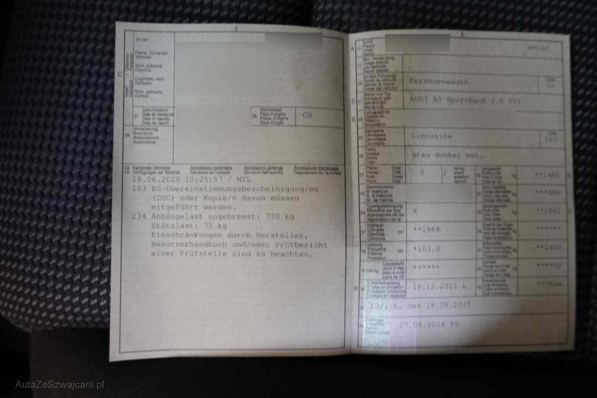 | Fahrzeugausweis | Vorhanden |