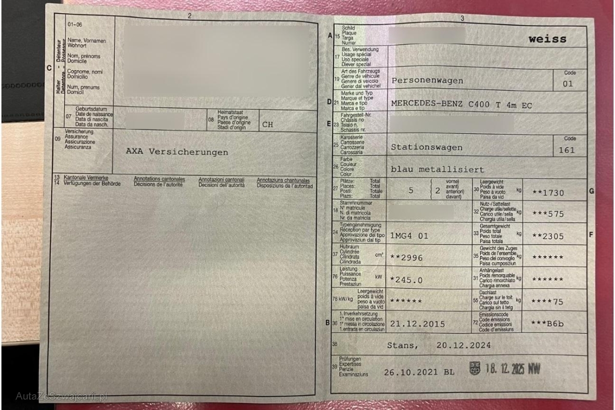 | Fahrzeugausweis | Vorhanden |