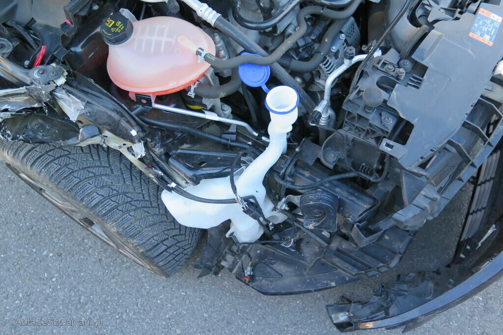 Partie avant droite enfoncée, éclairage cassé, aile avant arrachée, façade avant cassée, longeron et joue d'aile refoulés, câblage électrique endommagé, train avant faussé, divers garnissages et accessoires cassés.