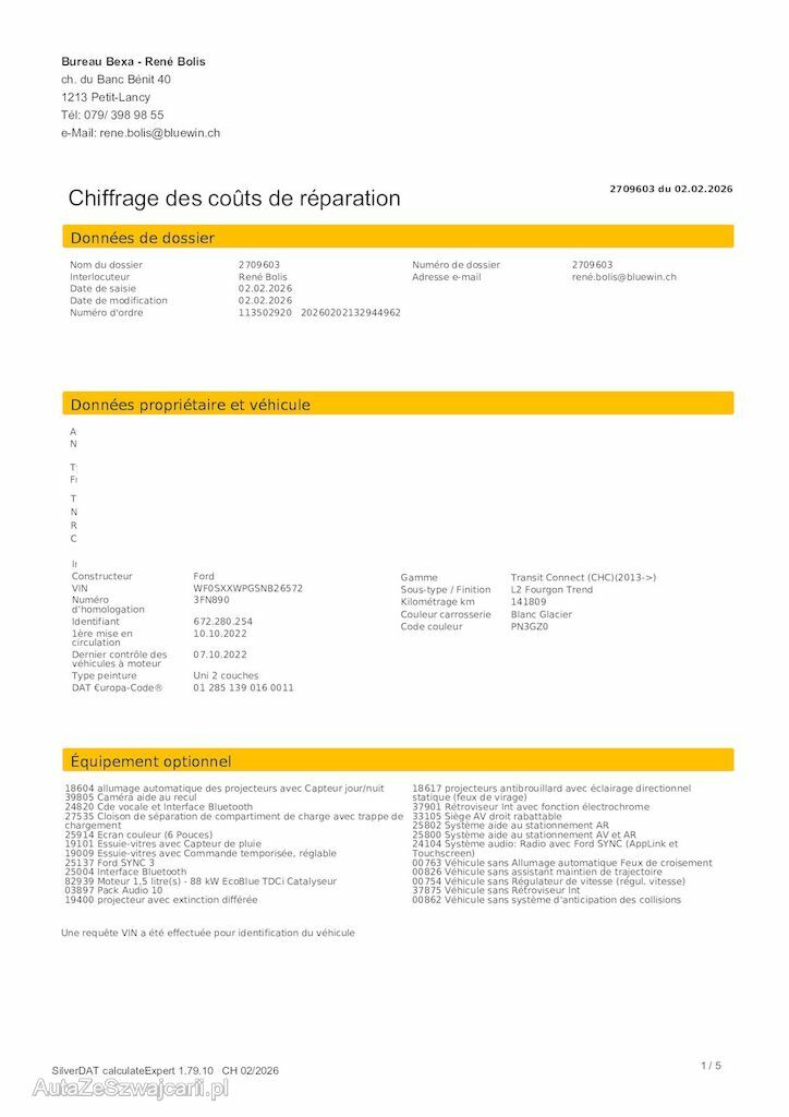 | Reparaturkosten | 16'634.20 CHF |