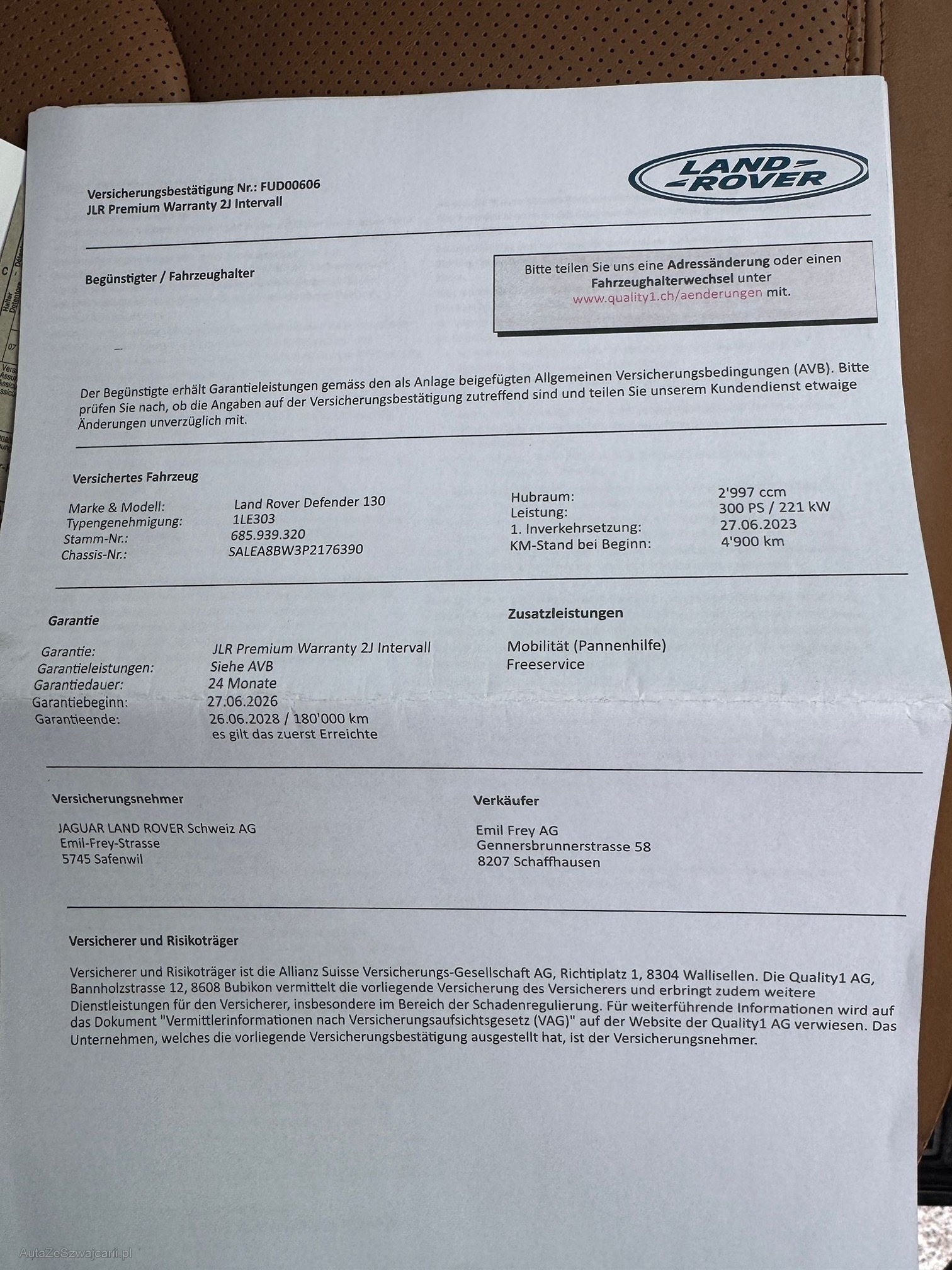 | Kommentar | Service wurde frisch durchgeführt Garantie Verlängerung gemäss Anhang 06.28 |