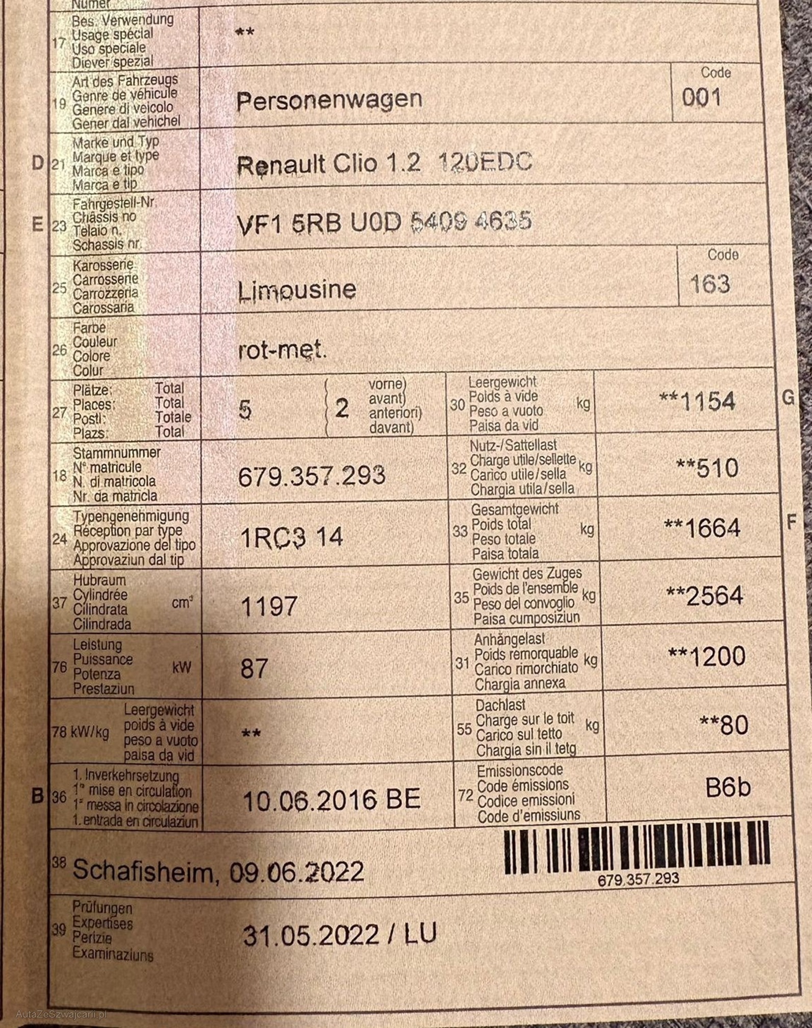 | VIN | VF1 5RB U0D 5409 4635 |