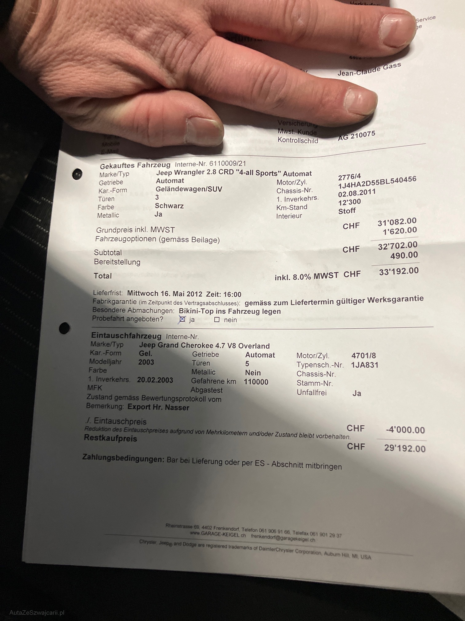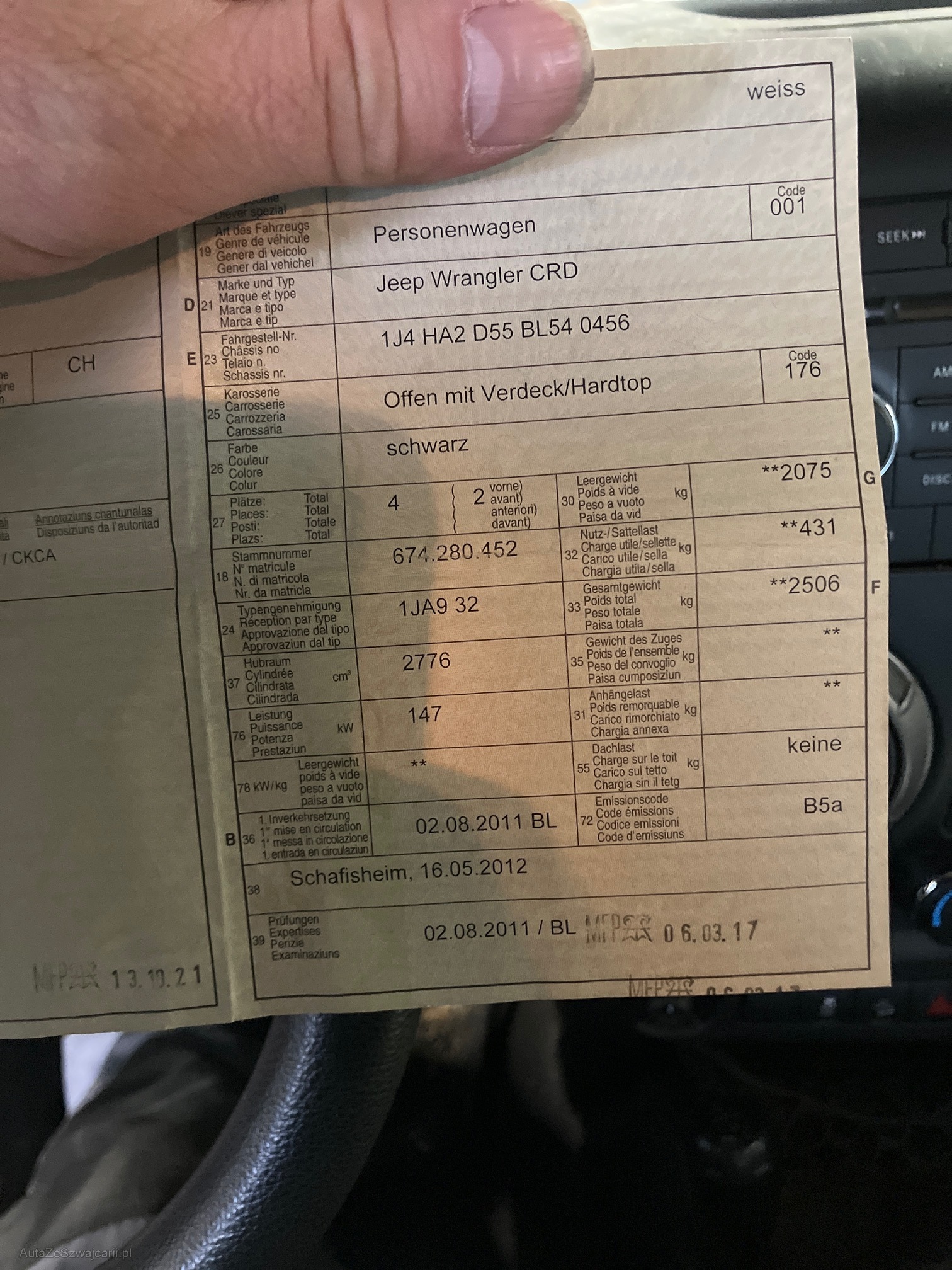 | Kommentar | Bauernhoffahrzeug. Aufhängungsbolzen vorne ausgeschlagen. Auspuff klappert. Keine ausführende Werkstattkontrolle durchgeführt. Fahrzeug im Kindenauftrag. |