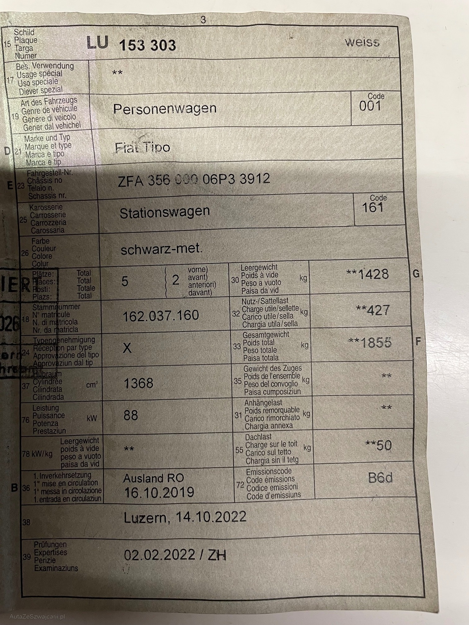 | Kommentar | Turbo defekt, Auto fahrbar, es handelt sich um ein gebrauchtes Handwerkerfahrzeug, Raucherauto, Fahrzeug war beschriftet, Lack löst sich auf Motorhaube Am Fahrzeug wurde kein Werkstatttest gemacht, das heisst: Für sichtbare oder nicht sichtbare Mängel wird nicht gehaftet. Wir testen und kontrollieren nicht alle Funktionen vom Fahrzeug. Das Risiko liegt somit vollumfänglich beim Käufer. Fahrzeug kann nach Voranmeldung vor Ort besichtigt werden. Nachdem der Höchstbietende den Zuschlag erhalten hat, gibt es keine Nachverhandlung, auch wenn nicht deklarierte Mängel zum Vorschein kommen sollten. Fahrzeug ab Platz, das heisst: ohne Garantie, ohne Nachwährschaft, gekauft wie gesehen. Wandelung und Minderung werden wegbedungen. |