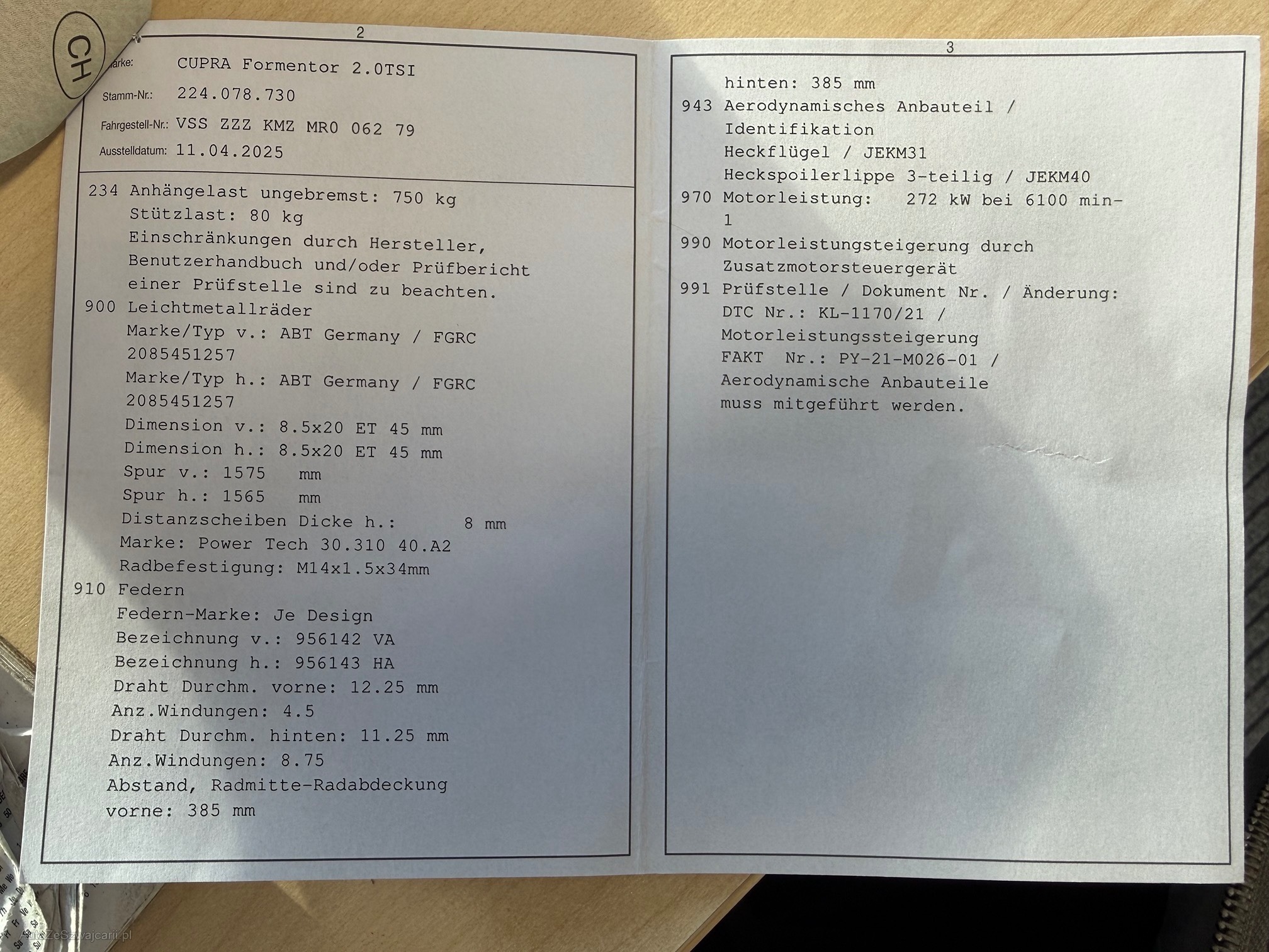| Leistung in kW | 272 |