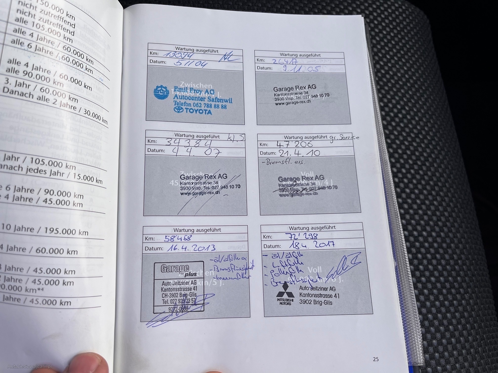 | Kommentar | Winterreifen sehr gutes Profil aber DOT 2014, Sommerprofil sehr gut und DOT 22, Zentralverriegelung Öffnung funktioniert nur mechanisch mit Schlüssel. Schliessung funktioniert über Schlüssel-FB und mechanisch mit Schlüssel. Bei den Schlüsseln fehlen zum Teil die Drucktasten (siehe Fotos). Es handelt sich um ein Occasion Fahrzeug das Gebrauchsspuren aufweist, aber dem Älter entsprechend in einem sehr guten Zustand ist. Carrosserieschäden am Fahrzeug siehe Fotos. Es wude kein detaillierter Werkstatttest am Fahrzeug gemacht. Jede Gewährleistung, soweit nach Gesetz möglich, wird wegbedungen, insbesondere sind Wandelung und Minderung ausgeschlossen. Der Käufer bestätigt mit seinem Gebot, dies anzuerkennen und verpflichtet sich, das ersteigerte Fahrzeug umgehend nach einer Banküberweisung abzuholen. Der Preis ist fix und nicht mehr verhandelbar! Es wird grundsätzlich kein Werkstatttest durchgeführt. |