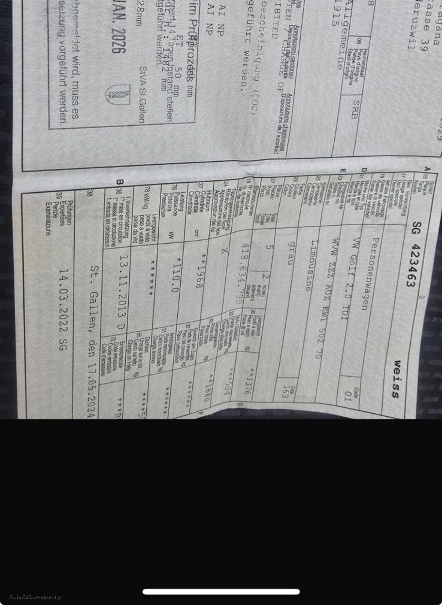 | Kommentar | Verkauf ausschliesslich ab Platz, Jede Gewährleistung, soweit nach Gesetz möglich, wird wegbedungen, insbesondere sind Wandelung und Minderung ausgeschlossen. Der technische Zustand ist unbekannt, das Fahrzeug wurde nicht geprüft. Zustand wie auf den Bildern, kann jedoch bei der Abholung abweichen. (z. B. Mängel, die uns nicht bekannt sind.) Sämtliche Mängel sind Sache des Käufers. Keine Rücknahme, keine Nachverhandlung, kein Preisnachlass. Kauf erfolgt wie gesehen. |
