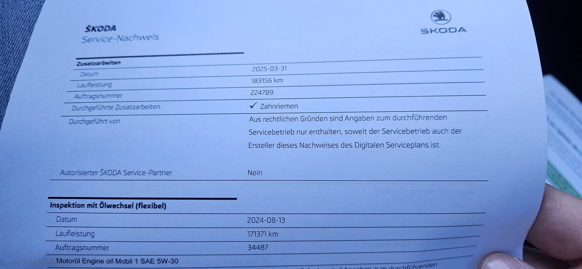 | Zahnriemen gewechselt | Yes |