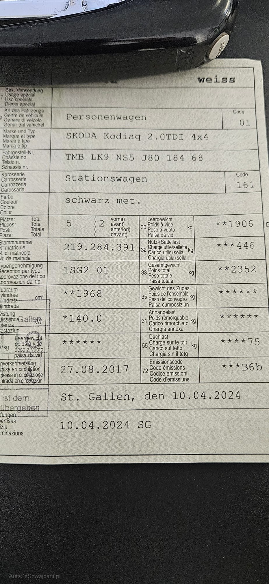 | Kommentar | - Karosserie hat diverse Gebrauchsspuren (Kratzer und Dellen) - Stossstange vorne R gemäss Bilder beschädigt "Jede Gewährleistung, soweit nach Gesetz möglich, wird wegbedungen, insbesondere sind Wandelung und Minderung ausgeschlossen" |