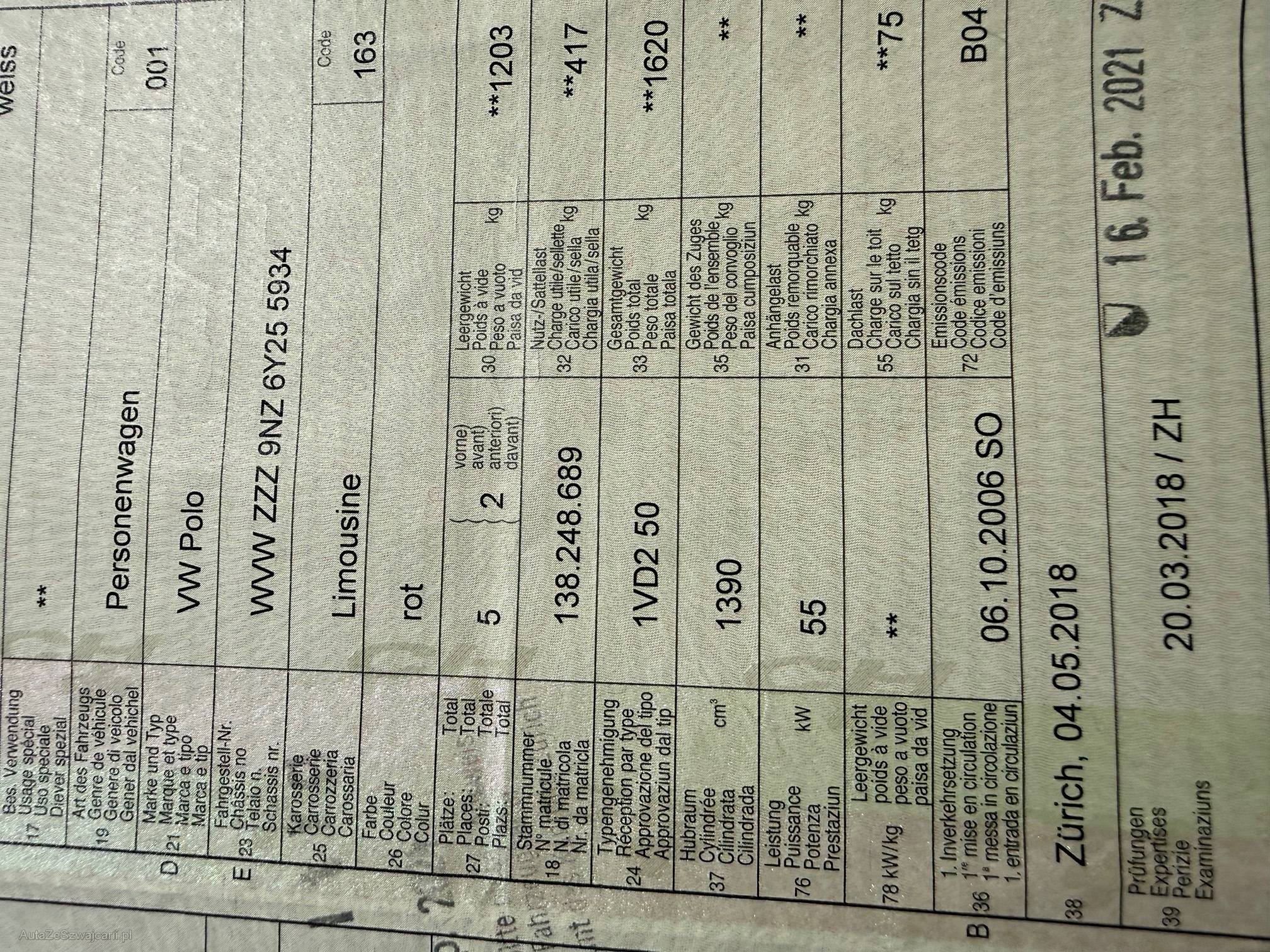 | Kommentar | Kein Werkstattest durchgeführt, ohne jegliche Nachgewährschaft Karosserie gemäss Fotos |