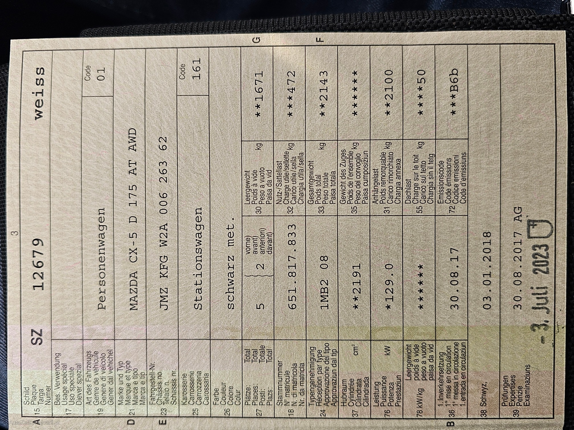 | Kommentar | - Kein Werkstatttest gemacht - technisch i.O. - innen und aussen gepflegt |