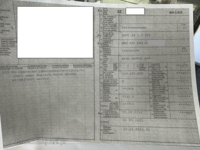 | Condition_and_Equipment | Demontage Persönliche Gegenstände oder Ladegut im Fahrzeug werden entfernt. Zustand Fahrzeug muss transportiert werden (Höhe und Breite beachten). Fahrzeug ist NICHT rollbar. Fahrzeug hat sich mehrmals überschlagen. Motor startet nicht, Ursache unbekannt. Batterie leer. Bereifung Fahrzeug wird mit Winterräder abgegeben. Schlüssel Beide Schlüssel vorhanden. Standzeit Das Fahrzeug wurde lange nicht gefahren --- Links Linke Seite beschädigt. Anstoss links im Bereich der A-Säule. Bodengruppe links ist eingedrückt. Tür vorne links ist eingedrückt. Rechts Rechte Seite beschädigt. Anstoss rechts im Bereich der A-Säule. Bodengruppe rechts ist eingedrückt. Tür vorne rechts ist eingedrückt. Front Front eingedrückt. Kotflügel vorne rechts und links eingedrückt. Motorhaube eingedrückt. Frontblech/Maskenblech eingedrückt. Radhaus vorne links eingedrückt / gestaucht. Längsträger vorne links gestaucht. Fahrzeugvorbau verschoben. Heck Abgasanlage deformiert. Motor Risiko Motor. Risiko Getriebe. Motoranbauteile beschädigt. Alle Kühler vorne sind eingedrückt. Öl-/Kraftstoffaustritt vorhanden Achse Vorderachse ist beschädigt. Aufhängungsteile vorne links beschädigt. Aufhängungsteile vorne rechts beschädigt. Lenkgetriebe ist beschädigt. Motoraufhängung/Aggregateträger ist beschädigt. Elektrik Risiko Steuergeräte. Kabelstränge verbrannt, beschädigt, abgerissen. Innenraum Beide Airbags sind ausgelöst. Seitenairbag rechts ausgelöst. Seitenairbag links ausgelöst. Kopfairbag links ausgelöst. Kopfairbag rechts ausgelöst. Armaturenbrett ist beschädigt. Gurtstraffer ausgelöst. Gurtstraffer vorne ausgelöst. Gurtstraffer hinten ausgelöst. Dachhimmel gerissen. Innenraum ungepflegt. Sitz vorne links defekt. Sitz vorne rechts defekt. Starke Verschmutzung im Innenraum. Unangenehme Geruchsentwicklung im Innenraum (z.B. Treibstoff, Lebensmittel, Rauch, etc.) Feuchtigkeitsschaden Innenraum Glas Windschutzscheibe ist gerissen. Türscheibe vorne links ist zerbrochen / beschädigt. Dach Dach eingedrückt. Unterboden Bodengruppe verzogen/beschädigt. Unterboden stark verschmutzt. Sonstige Schäden Div.Carrosserie Teile sind leicht beschädigt. Weitere Beschädigungen Fahrleistung nicht lesbar, Angabe geschätzt! Keine Spannung vorhanden. Weitere nicht aufgeführte und nicht fotografisch festgehaltene oder verdeckte Schäden sind möglich! Die Fahrzeuggarantie oder Gewährleistung wird möglicherweise nicht vom Hersteller fortgeführt! --- Serienaustattung Deaktivierung Beifahrerairbag/ Isofix Kindersitzverank. V+H Aussenspiegel elektrisch verstellbar und heizbar Airbag Fahrer und Beifahrerseite Seitenairbag Fahrer und Beifahrerseite Servotronic Sportsitze vorne Seitliches Kopfairbagsystem SIDEGUARD Radschrauben mit Diebstahlsicherung Dachreling blank Reifendruck-Kontrollsystem RDK Dekoreinlagen in Aluminium Xenon-Plus Scheinwerfer Gepäckraumklappe automatisch öffnend ABS und EBV Elektr. Bremskraftverteilung ESP Elektronisches Stabilitätsprogramm Dieselpartikelfilter DPF Radioempfang digital DAB Klimaautomat Fahrerinformationssystem Pack Glanz Fussmatten vorn und hinten Multifunktions-Ledersportlenkrad Rücksitzlehne geteilt umklappbar Audi drive select (Fahrzeugcharakteristik) Leichtmetallräder 17" 5-Speichen Y Design Bluetooth Schnittstelle Stop + Start System Keine Gewähr auf die Angaben der Serienausstattungen MMI Radio plus Sonderausstattung Sitzheizung für Vordersitze Sportfahrwerk Dachhimmel schwarz/ Stoff Fahrerinformationssystem mit Farbdisplay Komfort-Mittelarmlehne vorne Sitzbezüge in Leder-Alcantara Park-System plus vorne + hinten Pack Ablage Multifunktions-Ledersportlenkrad 3-Speich.(unten abgeflacht) Licht- und Regensensor Audi Sound System Metallic-Lackierung Klimaautomat plus 3-Zonen Pack Licht Pack Exterieur S-Line Fernlichtassistent Leichtmetallräder 18" 10-Speichen V Design MMI Navigation LED-Scheinwerfer Audi Side Assist inkl. Audi pre sense rear Audi pre sense basic Vorbereitung für Anhängevorrichtung Audi Phone Box Kamerabasierte Verkehrszeichenerkennung Kopfstützen vorne verstellbar Pack Assistenz Tour Audi connect Notruf & Service AdBlue Tank Interieurelemente in Kunstleder Akustikverglasung Ausstattung Metallic-Lackierung |