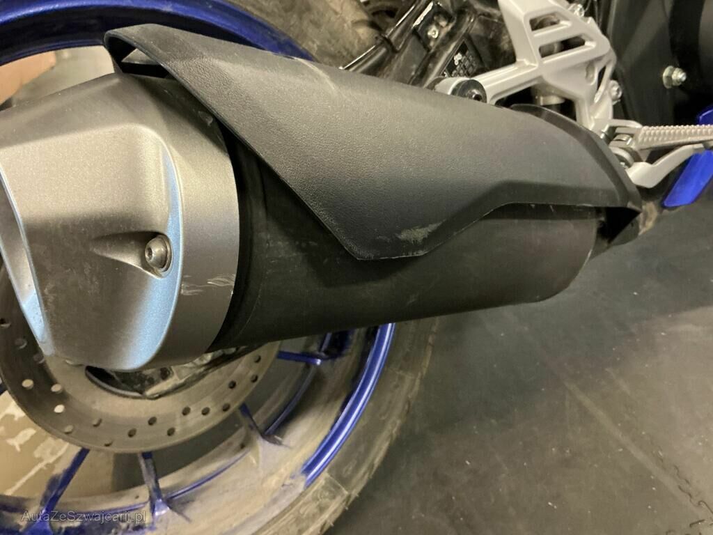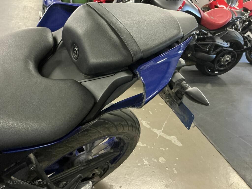 Carénage avant gauche , phare avant, support compteur, carénage arrière gauche, clignotant avant gauche cassés. Rétroviseur gauche, poids de guidon gauche, levier embrayage, sélecteur vitesses, cale pied gauche griffés.