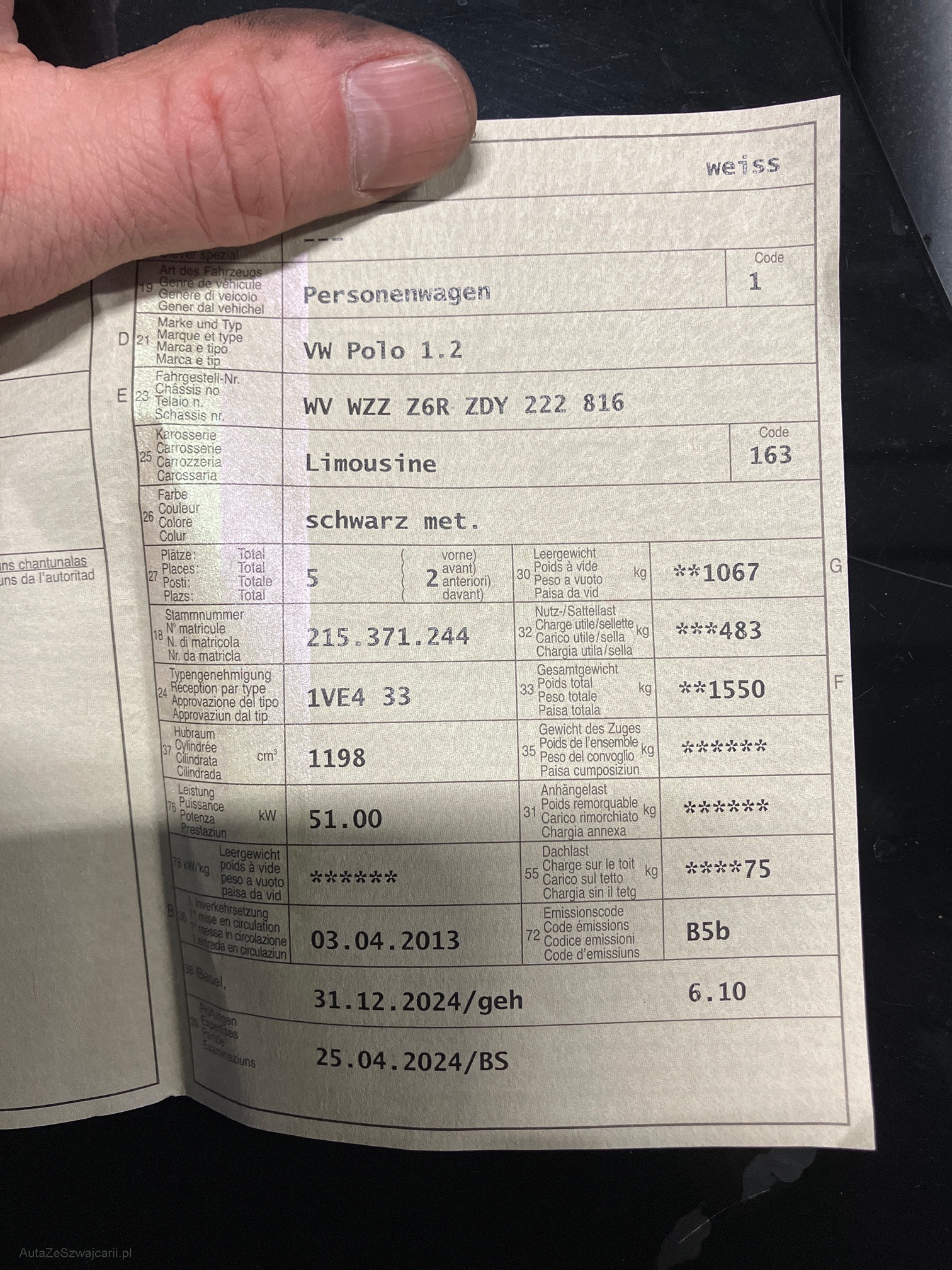 | Kommentar | Eintauschfahrzeug ohne Werkstattkontrolle |