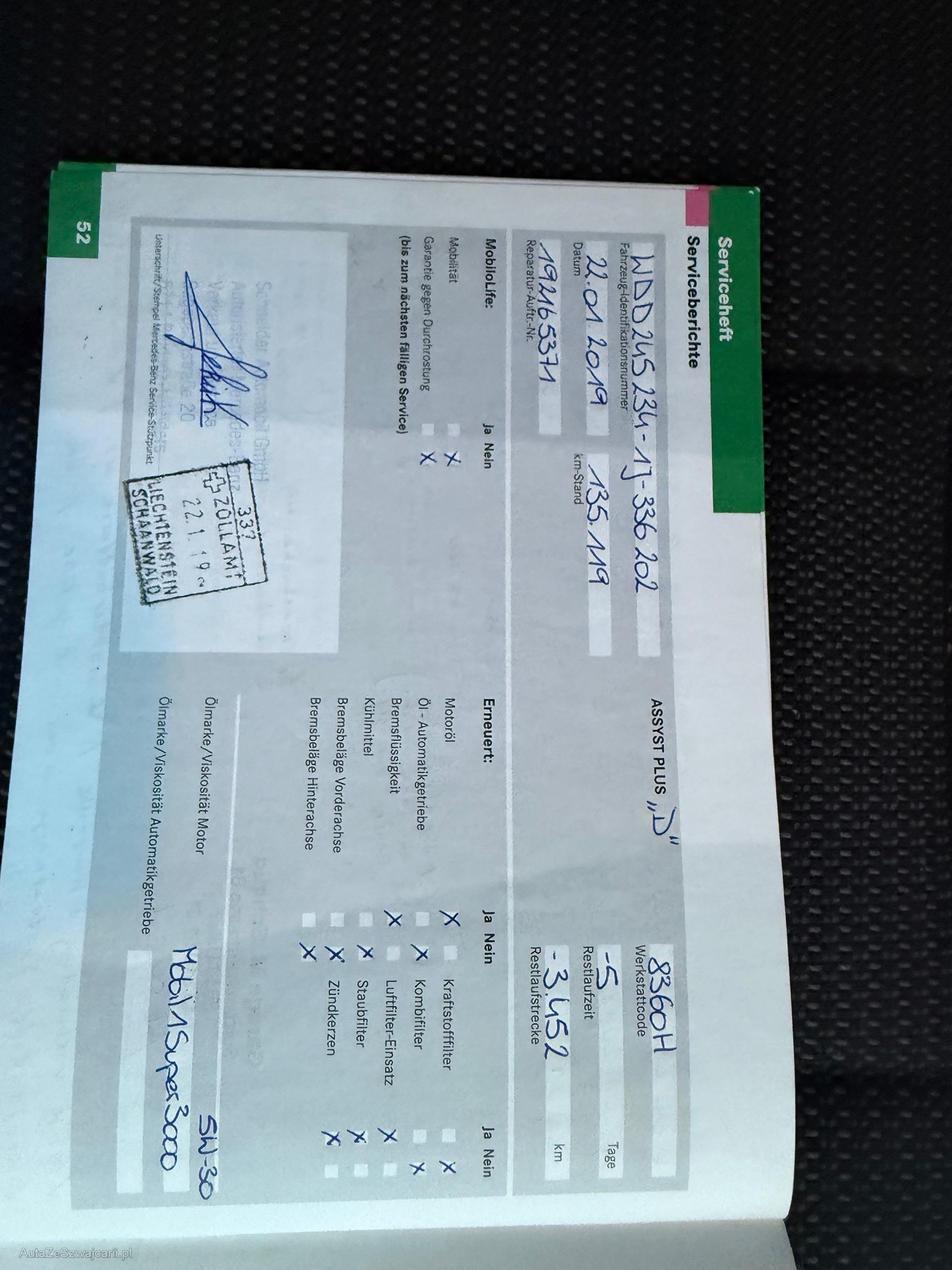 | Kommentar | Am Fahrzeug wurde kein Werkstatttest gemacht (Für sichtbare oder nicht sichtbare Mängel wird nicht gehaftet). Wir testen und kontrollieren nicht alle Funktionen vom Fahrzeug. Das Risiko liegt somit vollumfänglich beim Käufer. Nachdem der Höchstbietende den Zuschlag erhalten hat, gibt es keine Nachverhandlung, auch wenn nicht deklarierte Mängel zum Vorschein kommen sollten. Ab Platz ohne Garantie, Wandelung und Minderung werden wegbedungen. |