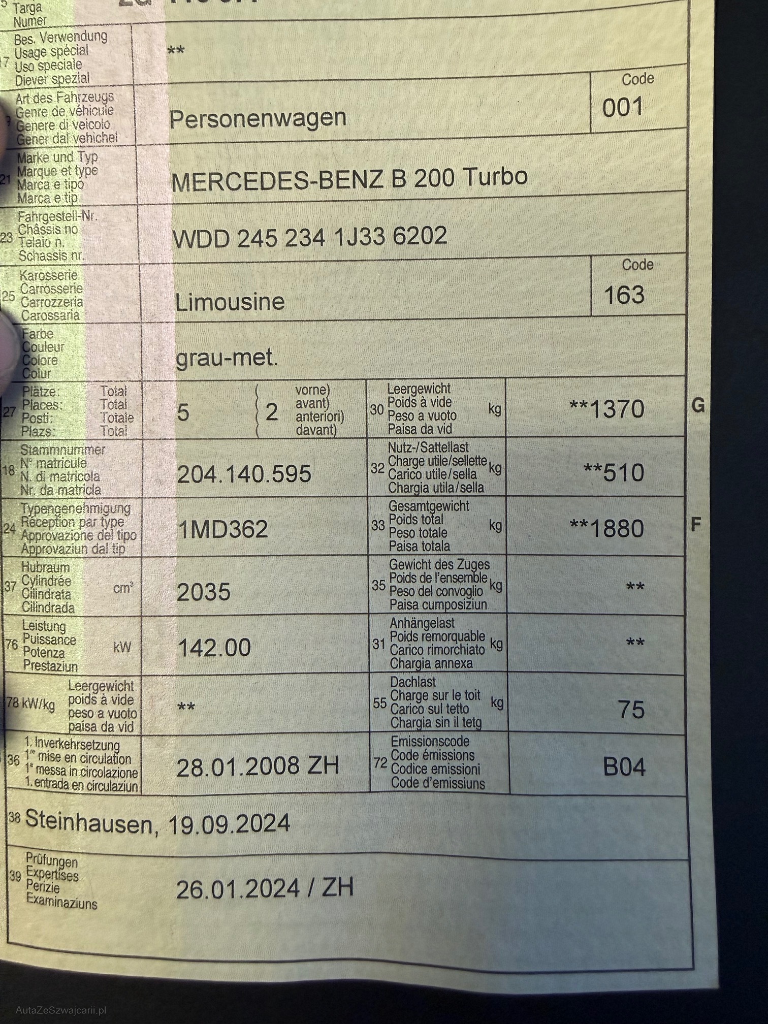 | VIN | WDD2452341J336202 |