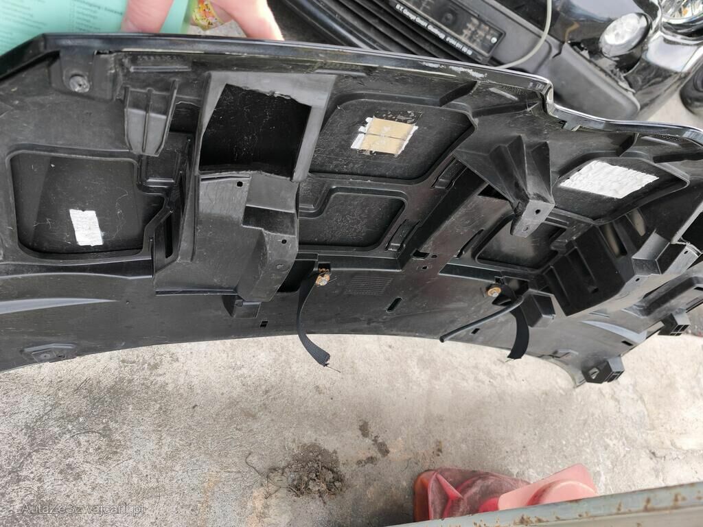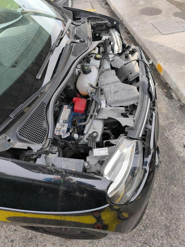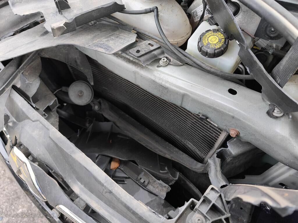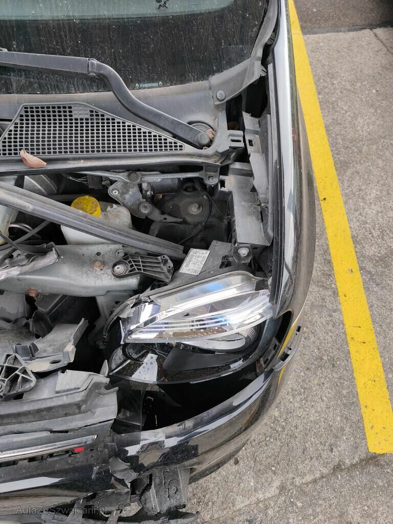Die Front des Fahrzeuges ist beschädigt und gestaucht. Alle Anbauteile im Frontbereich, das Frontmodul und das komplette Kühlerpaket sind beschädigt. Die Kotflügel vorne stehen an den Türen an.