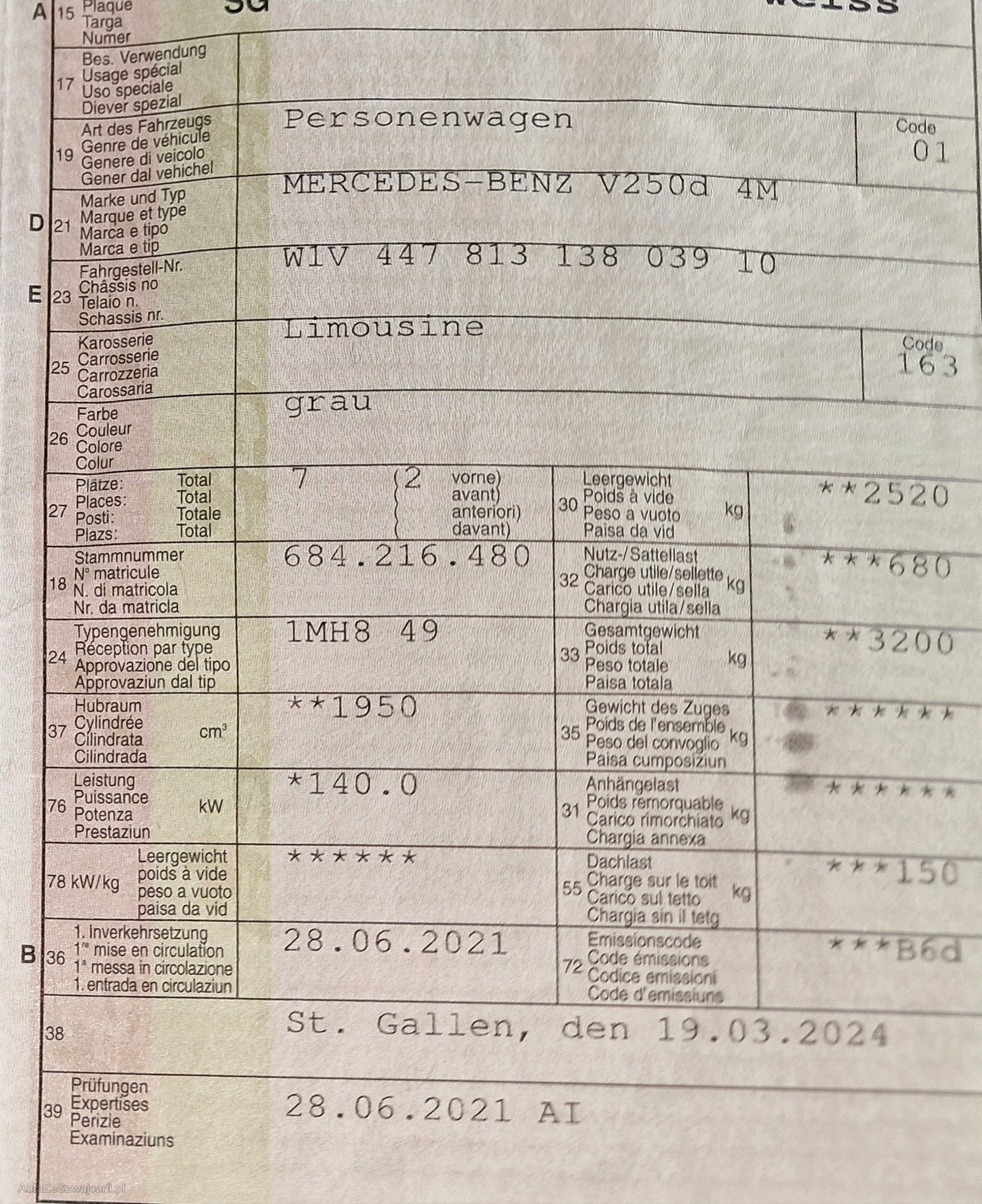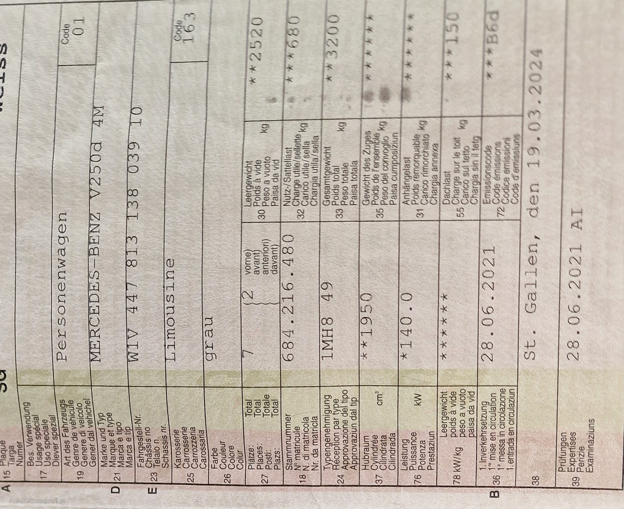 | Kommentar | Die Lenkung würde schlagen, laut privater Garage Kosten ca. 1'400 Fr die Reparatur. Verkauf ausschließlich ab Platz, jede Gewährleistung, somit nach Gesetz möglich wird wegbedungen, insbesondere sind Wandelung und Minderung ausgeschlossen. Der technische Zustand ist unbekannt, das Fahrzeug wurde nicht geprüft. Zustand wie auf den Bildern, kann jedoch bei der Abholung abweichen. Sämtliche Mängel sind Sache des Kunden. Keine Rücknahme, keine Nachverhandlung, kein Preisnachlass, Kauf erfolgt wie gesehen. |