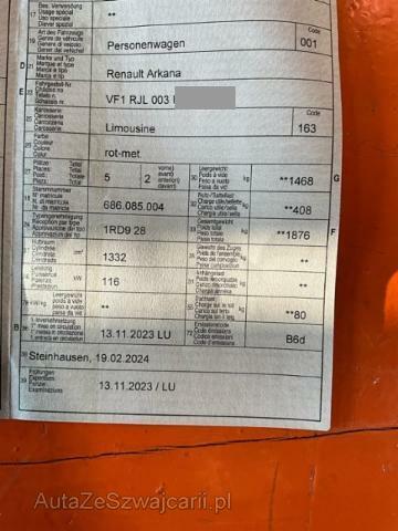 | Condition_and_Equipment | Front Front eingedrückt. Frontblech/Maskenblech eingedrückt. Heck Heck eingedrückt. Weitere Beschädigungen Risiko Kühler Scheinwerfer re. Motorhaube --- Serienaustattung Airbag Fahrer und Beifahrerseite Aussenspiegel elektrisch verstellbar und heizbar Servolenkung ABS und EBV Elektr. Bremskraftverteilung Leichtmetallfelgen 18" Reifendruck-Kontrollsystem RDK Ambientebeleuchtung Rückfahrkamera Seitenairbags vorne ESP/ ASR/ CSV Tempomat mit Geschwindigkeitsbegrenzer Automatisch abblendbarer Innenspiegel Dunkle Verglasung hinten Sitzbezüge in Stoff/ Kunstleder Klimaanlage automatisch inkl. Pollenfilter Automatische Parkbremse Renault Chipkarte Keyless-Drive Hands-free Licht- und Regensensor Einparkhilfe vorne und hinten Reifenreparatur-Kit Stop + Start System LED-Scheinwerfer Aussenspiegel elektrisch einklappbar Sitzbank hinten 1/3 - 2/3 umklappbar Spurhalteassistent LDW Keine Gewähr auf die Angaben der Serienausstattungen Abstandswarnung Notruf Adaptiver Fernlichtassistent Toter-Winkel-Assistent Automatische Notbremsung TFT-Display gross Wireless Charging für mobile Geräte Apple Car Play/ Android Auto Spurhaltewarner Querverkehrswarnassistent Ottopartikelfilter Navigationssystem mit Europakarte Multimediasystem 9.3" Sonderausstattung Ersatzrad Panorama-Glasdach Speziallackierung Metallic Sonstige Ausstattung und Zubehör Dach Look, Autonomes Fahren, Sorglos Paket |