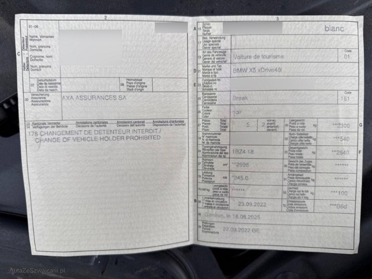 | Fahrzeugausweis | Vorhanden |
