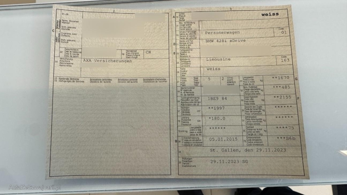 | Fahrzeugausweis | Vorhanden |
