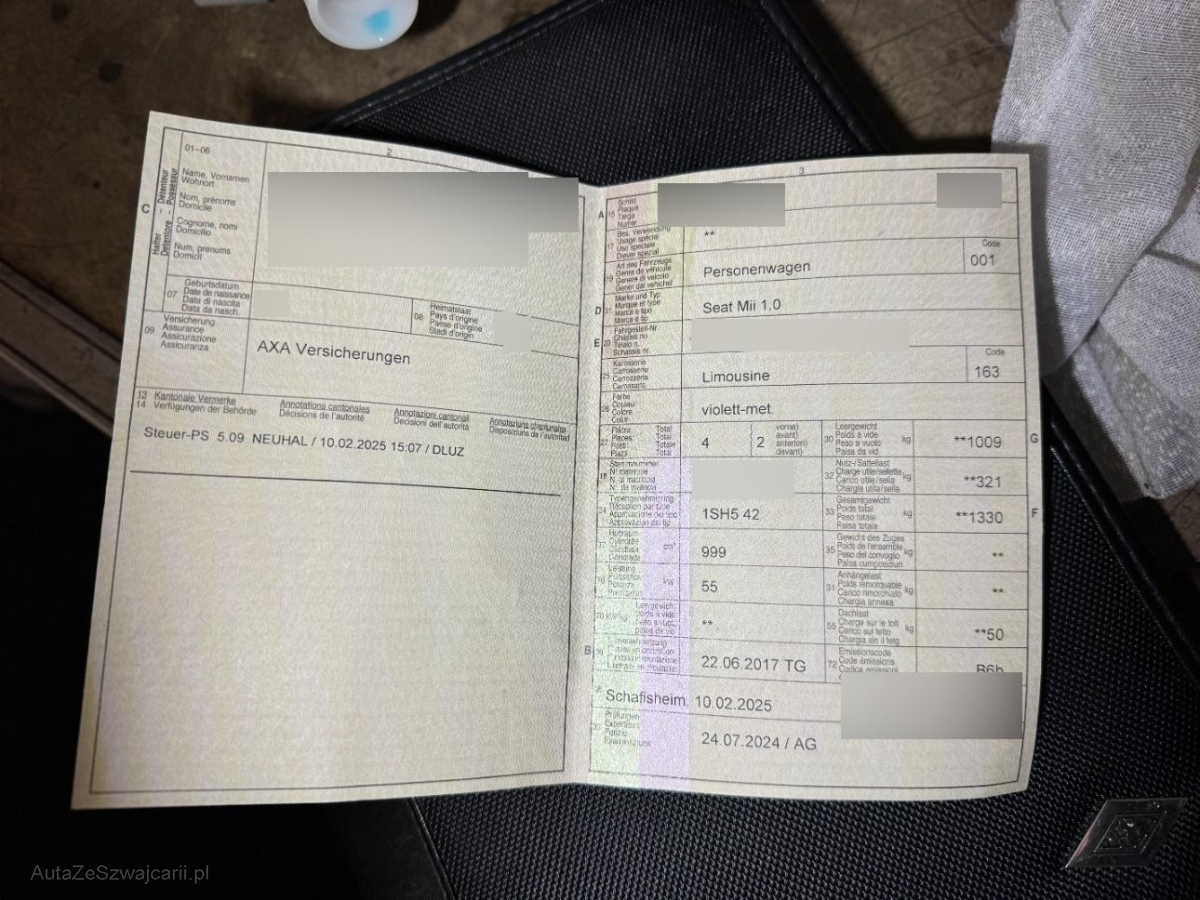 | Fahrzeugausweis | Vorhanden |