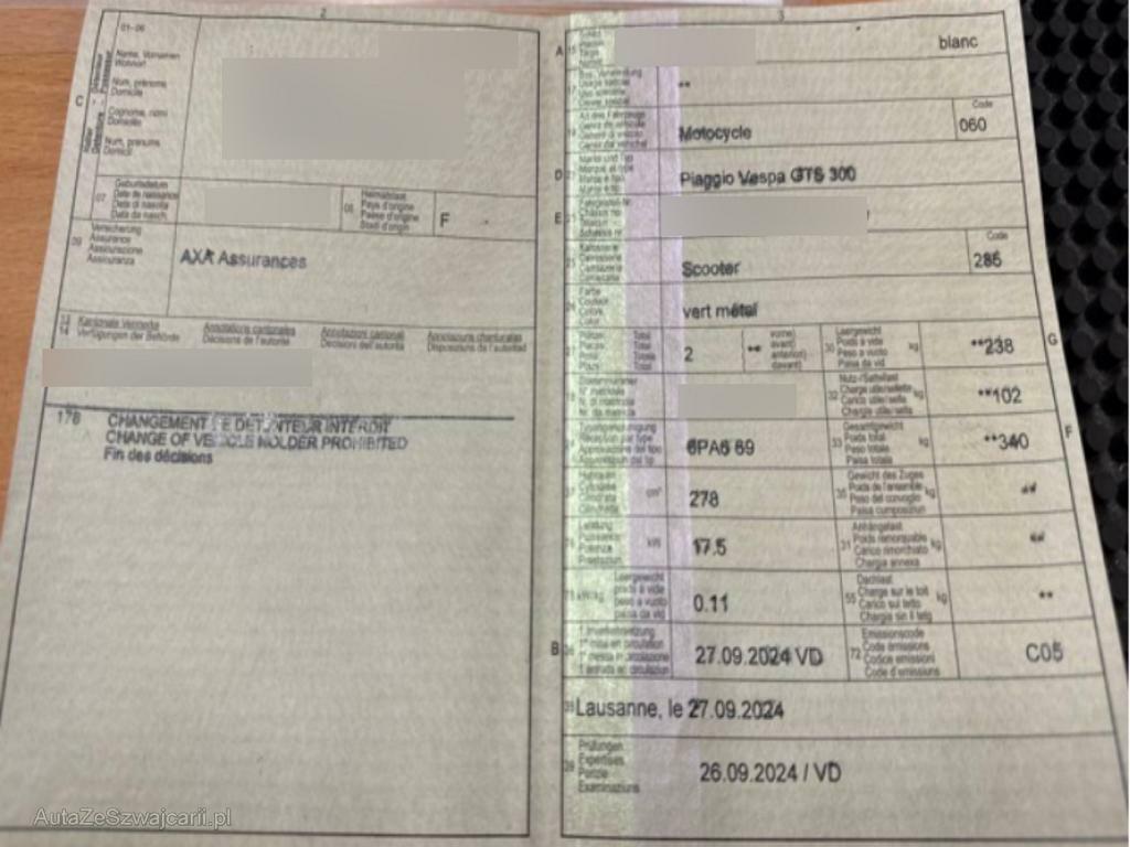 | Fahrzeugausweis | Vorhanden |