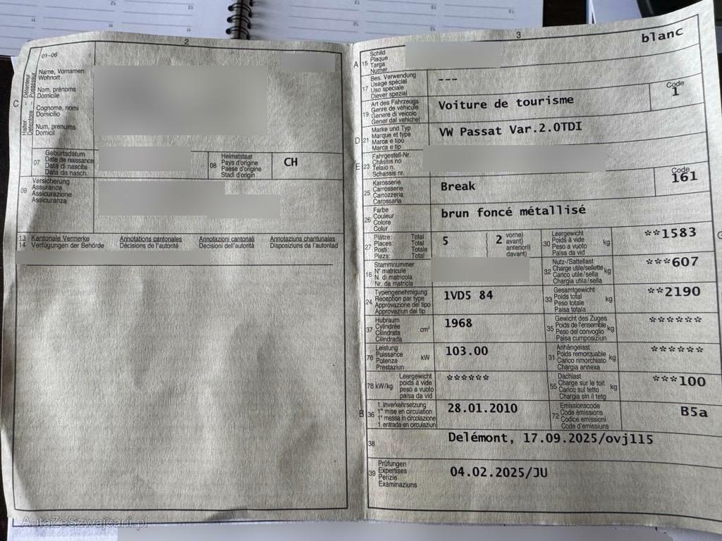 | Fahrzeugausweis | Vorhanden |