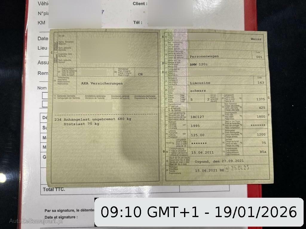 | Serienausstattung | Make up-Spiegel rechts, Heckscheibenheizung, Kofferraumfernentriegelung, Bremsassistent (BAS), 3-Punkt-Sicherheitsgurte auf allen Plätzen, Skisack, Wegfahrsperre elektronisch, Window-Kopfairbags, Motor Start-/Stop-Anlage, Lenkung, elektrisch unterstützt, Bremsbelag-Verschleissanzeige, Digital Uhr, Tageskilometerzähler, 3 Kopfstützen hinten, Gurtstraffer vorne, Aussentemperaturanzeige, Assist: Cornering Brake Control (CBC), Verbandskasten, Abschliessbare Radschrauben, Aux-In Anschluss, Befestigungsösen im Laderaum, Dynamische Stabilitätskontrolle (DSC), Lenkrad: Lenkrad längs- und höhenverstellbar, Scheibenwischer vorne mit Intervall, Stossstangen und Aussenspiegel in Wagenfarbe, Gurtkontrolle, Zweiklanghorn, ISOFIX Kindersitzvorrichtung, Rücksitzlehne geteilt abklappbar, Anbauteile in Wagenfarbe, Blinkleuchten seitlich vorn weiss, Radzierblenden, Abblendlichtausschaltverzögerung 'Follow me home', Katalysator geregelt, Veloursfussmatten vorne und hinten, Radiovorbereitung, Antenne, Entstörung und 6 LS, Airbag: Airbag Fahrer und Beifahrer, Lichtwarnsummer, Einstiegsschienen, Lackierung: Uni-Lackierung, Vordersitze höhenverstellbar, Reifendruckverlust-Warnsystem, Stoff-Ausstattung, Antiblockiersystem (ABS), Innenlicht-Abschaltverzögerung, Halogenscheinwerfer, Durchladeklappe, Tagfahrlicht, Nichtraucherausführung, Bordcomputer, Leuchtweitenregulierung elektrisch, Aussenspiegel rechts und links elektrisch verstellbar, Grün getönte Scheiben, Weisse Blinkleuchten, Türgriffe in Wagenfarbe, Radio BMW Business CD, Heckscheiben-Wisch-/Waschanlage, Nebelscheinwerfer, Drittes Bremslicht, 12-Volt-Steckdose vorne, Licht: Nebelschlussleuchte, Elektrische Fensterheber vorne + hinten, Check-Control-System, Wartungsintervall-Anzeige, iDrive-System, Oelstandsanzeige, Schutzleisten für Stossstangen vorne und hinten, Dekor: Interieurleisten in Satinsilber matt, Stahlräder, Getriebe: 6-Gang-Getriebe, Seitenairbags, Make up-Spiegel links, Zentralverriegelung mit Fernbedienung, Beleuchtetes Handschuhfach, Automatische Stabilitäts- und Traktions- kontrolle, Kombi-Instrumente mit Chromzierringen, Seitenaufprall-Schutzsystem, Drehzahlmesser, BMW Mobility System |