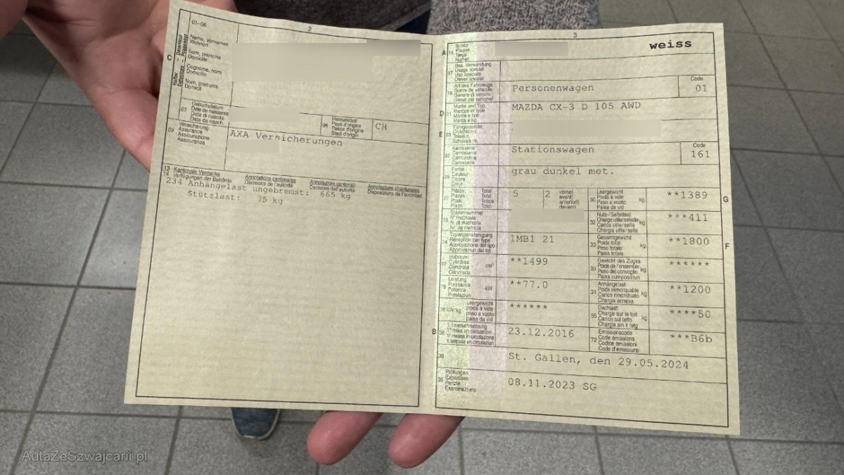 | Fahrzeugausweis | Vorhanden |